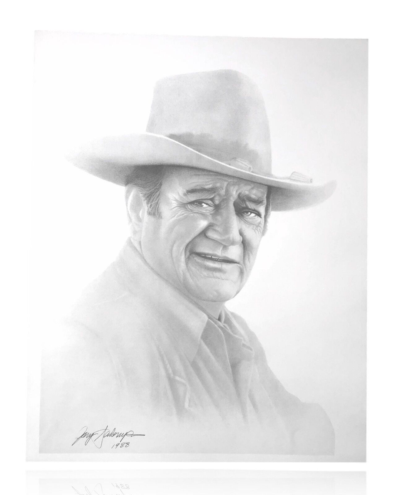 JOHN WAYNE 20" X 24" LITHOGRAPH CHARCOAL PORTRAIT BY ICONIC ARTIST GARY SADERUP!