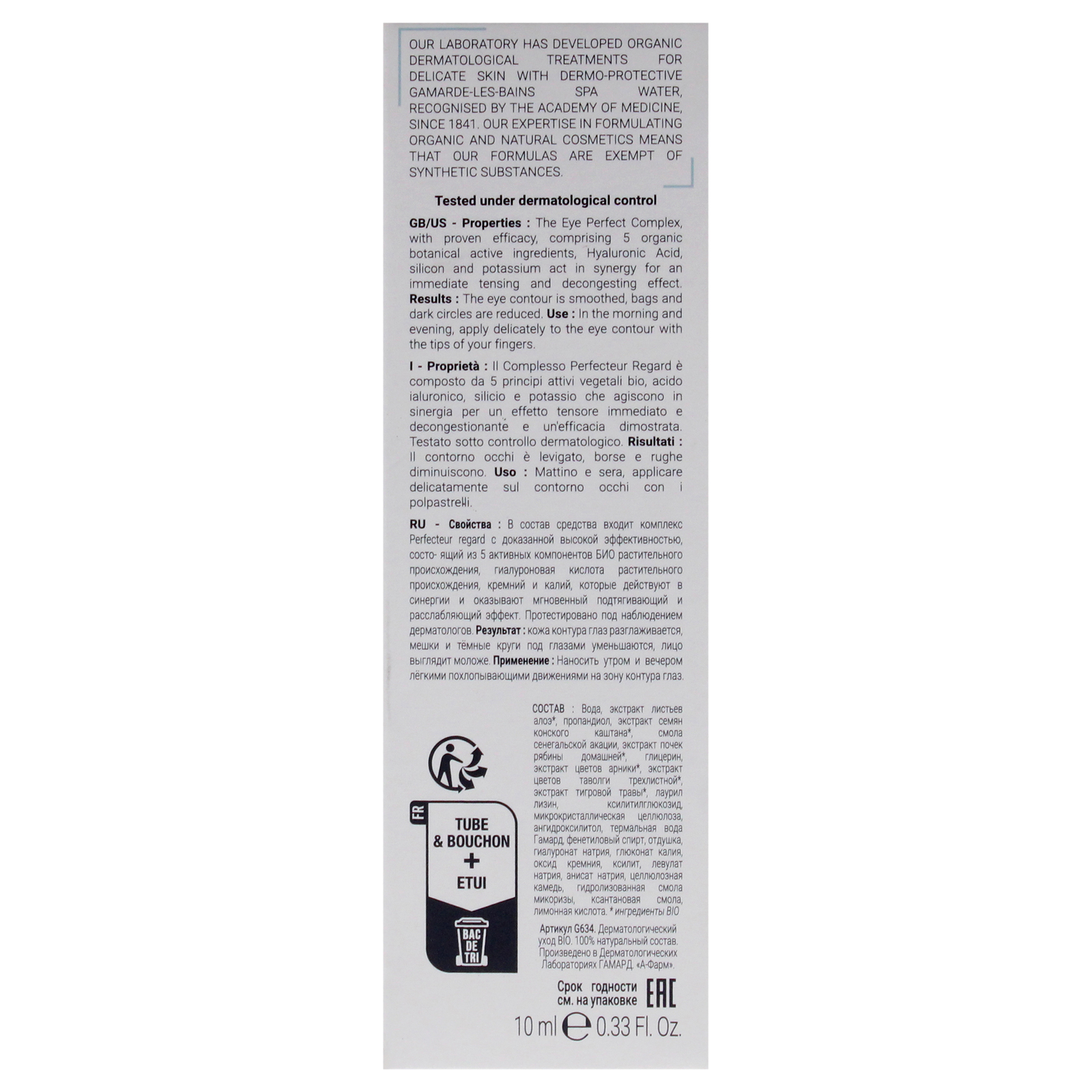 Thanks to the Eye Perfecting Complex with proven effectiveness composed of 5 organic plant active ingredients. Hyaluronic Acid of plant origin, silicon and potassium which act in synergy for an immediate tightening and decongestant effect.