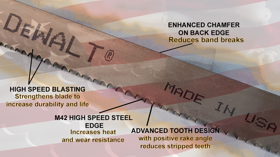 This is a high quality M42 DeWalt band saw blade welded to the specs above.