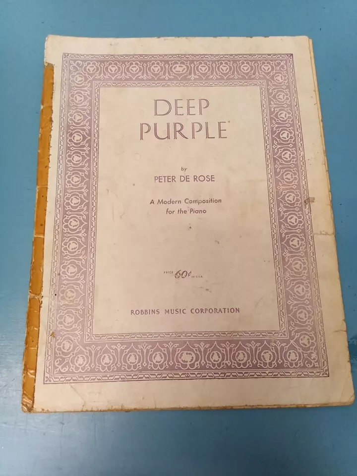 Folio-sized sheet music (1934 instrumental version) has moderate shelfwear and no writing in it, with tape repair of the cover.