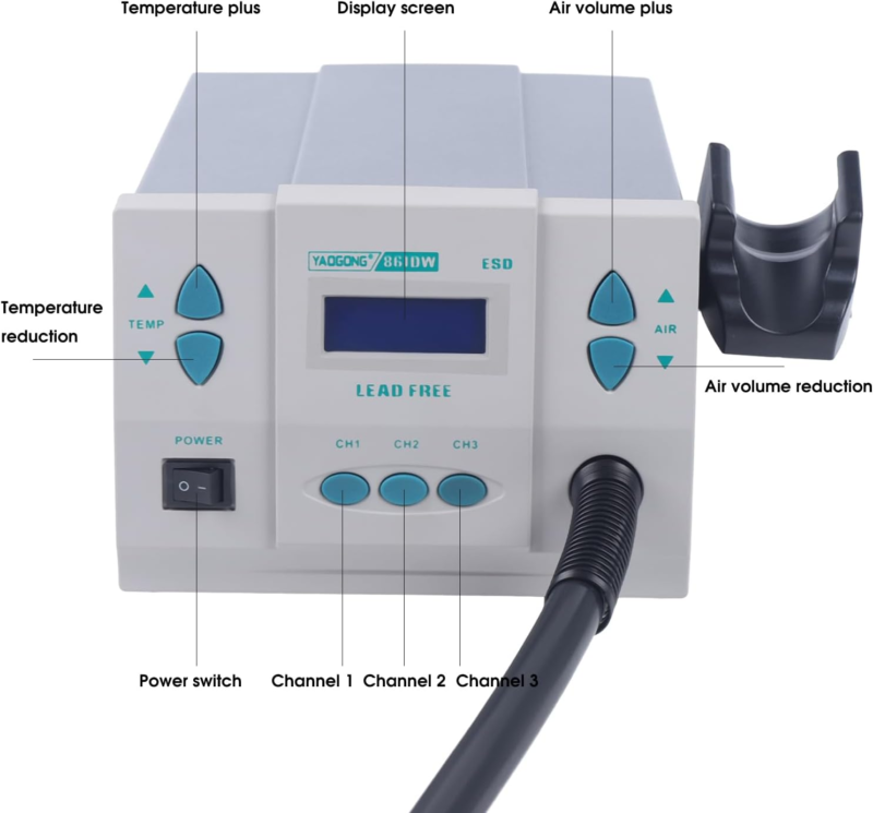 Air Volume Setting-Strong wind is heated evenly, large range of air flow, from extremely low flow, to very high flow, suitable for all electrical circuit board maintenance, more convenient