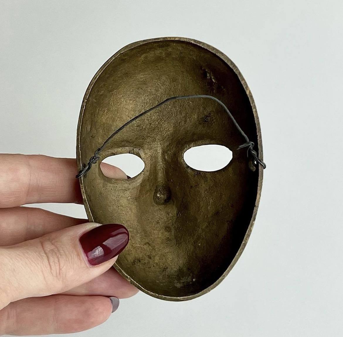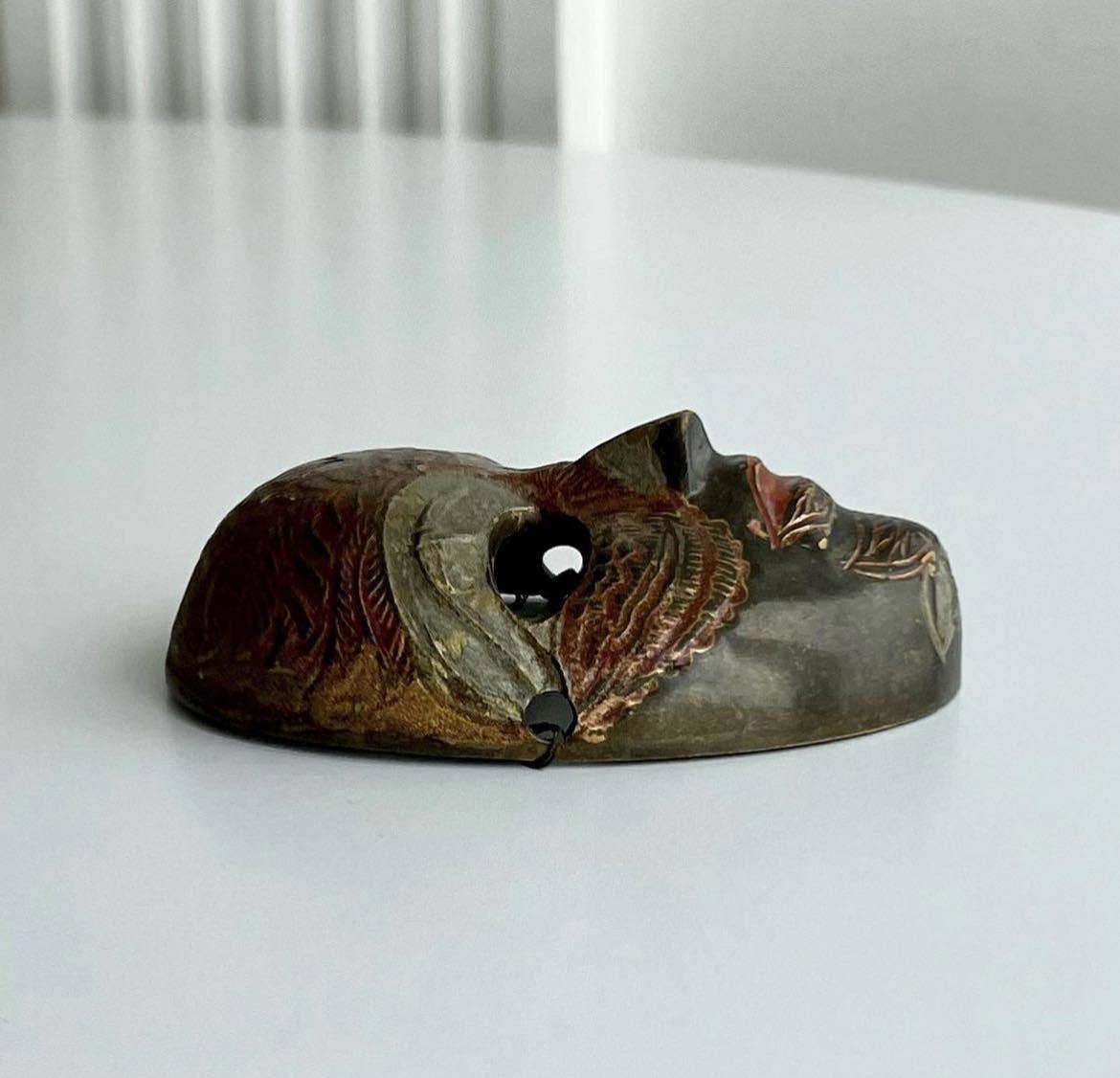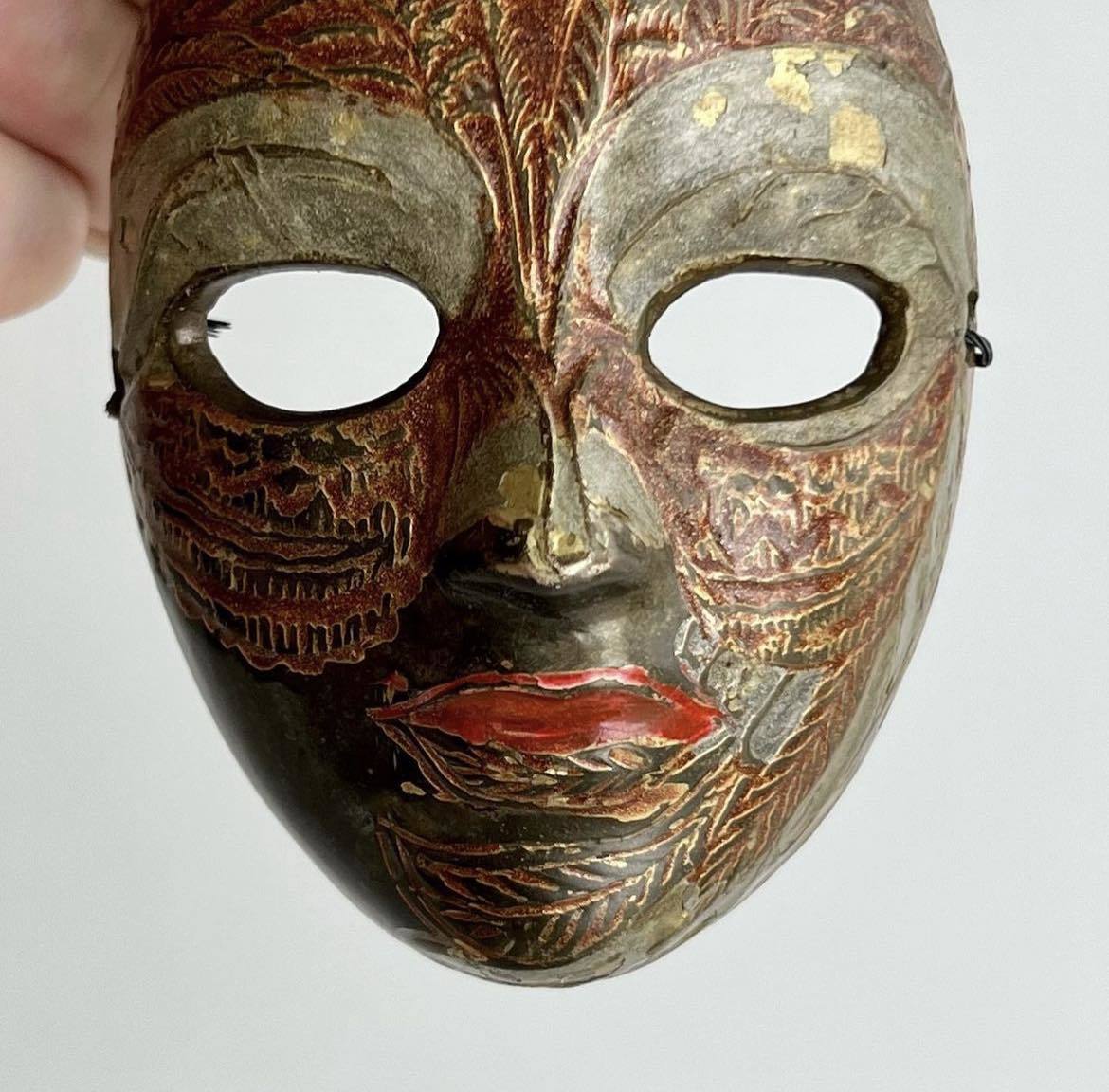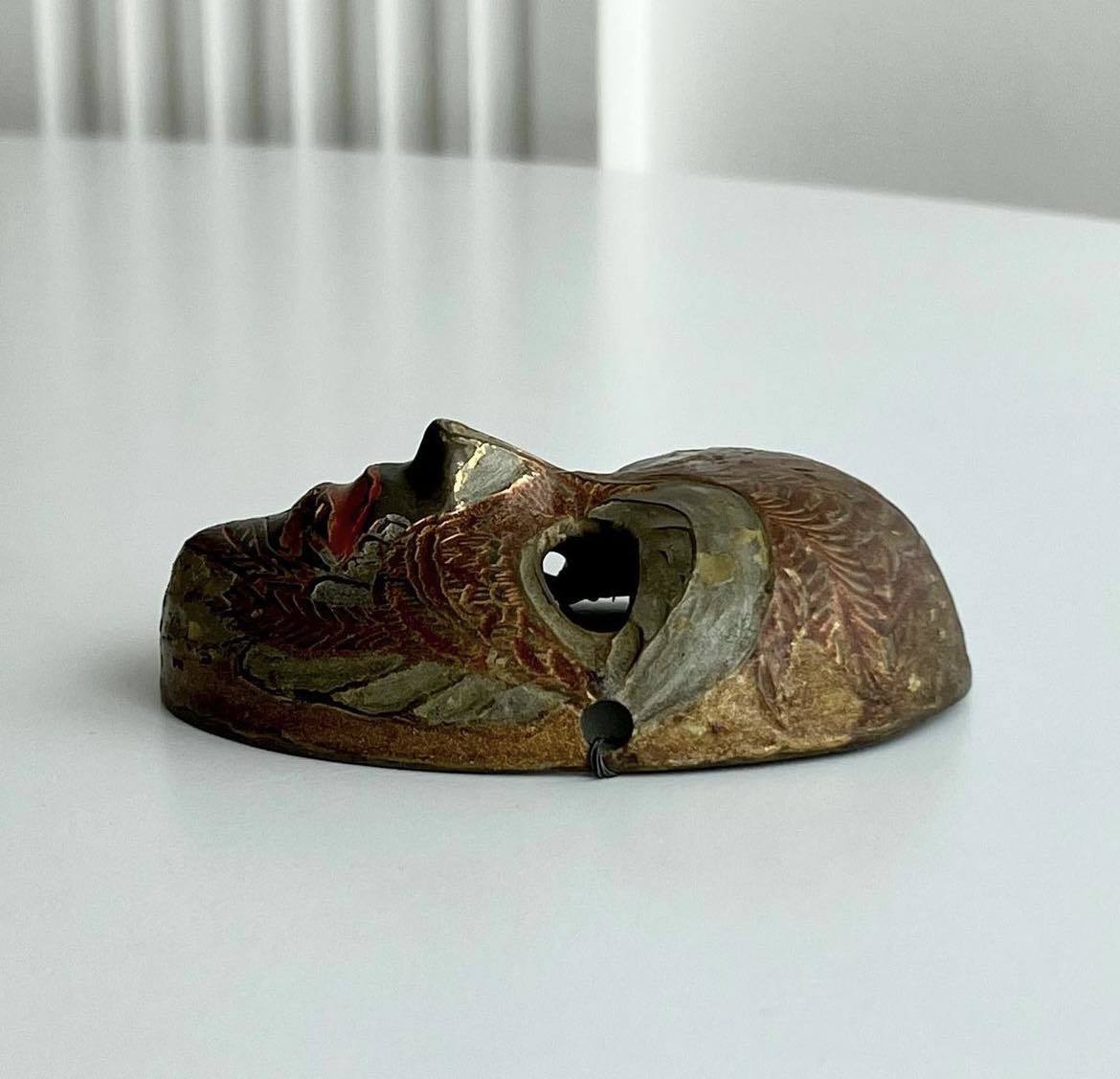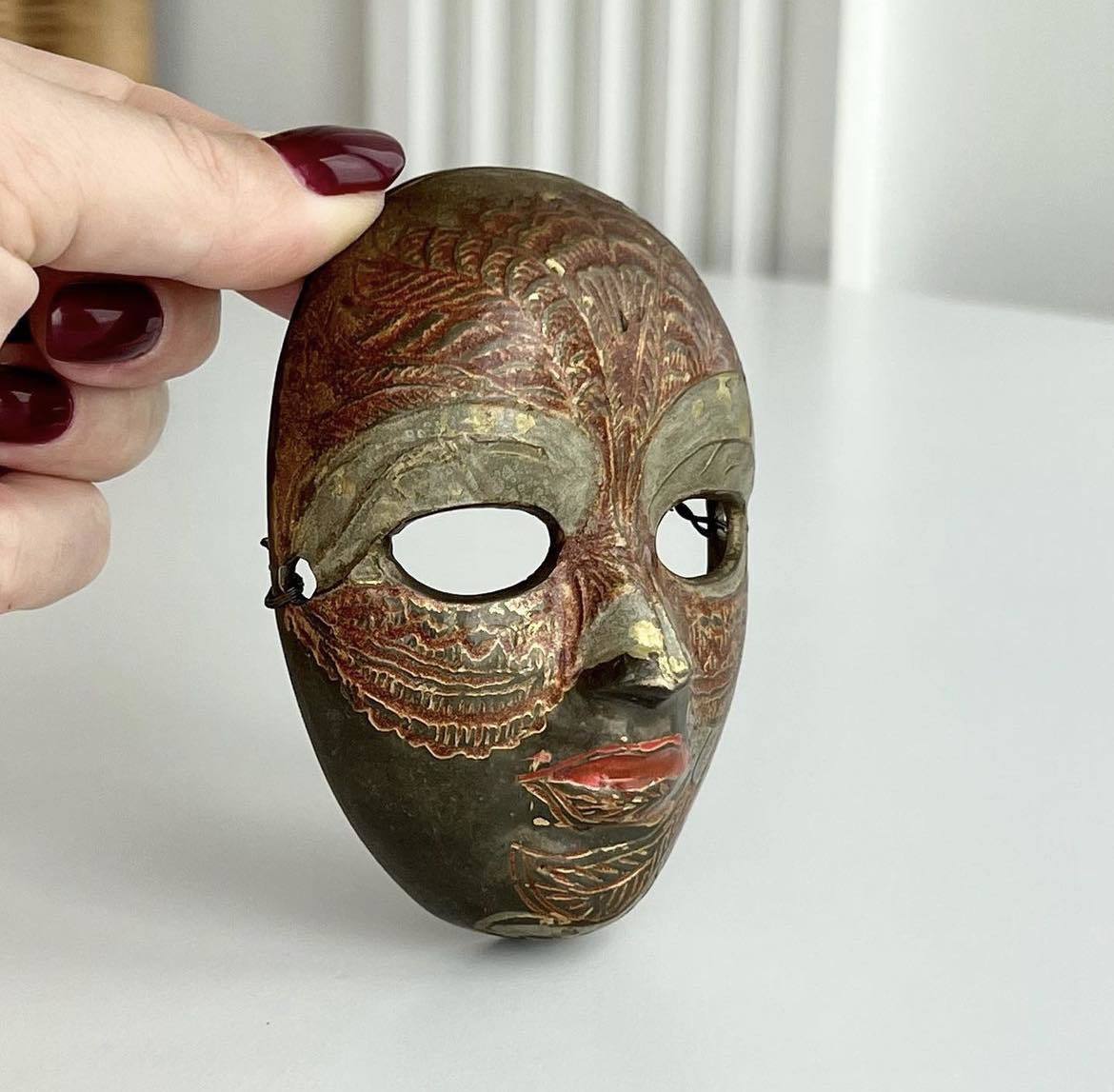 Handmade brass miniature wall mask. Painted with enamel.
