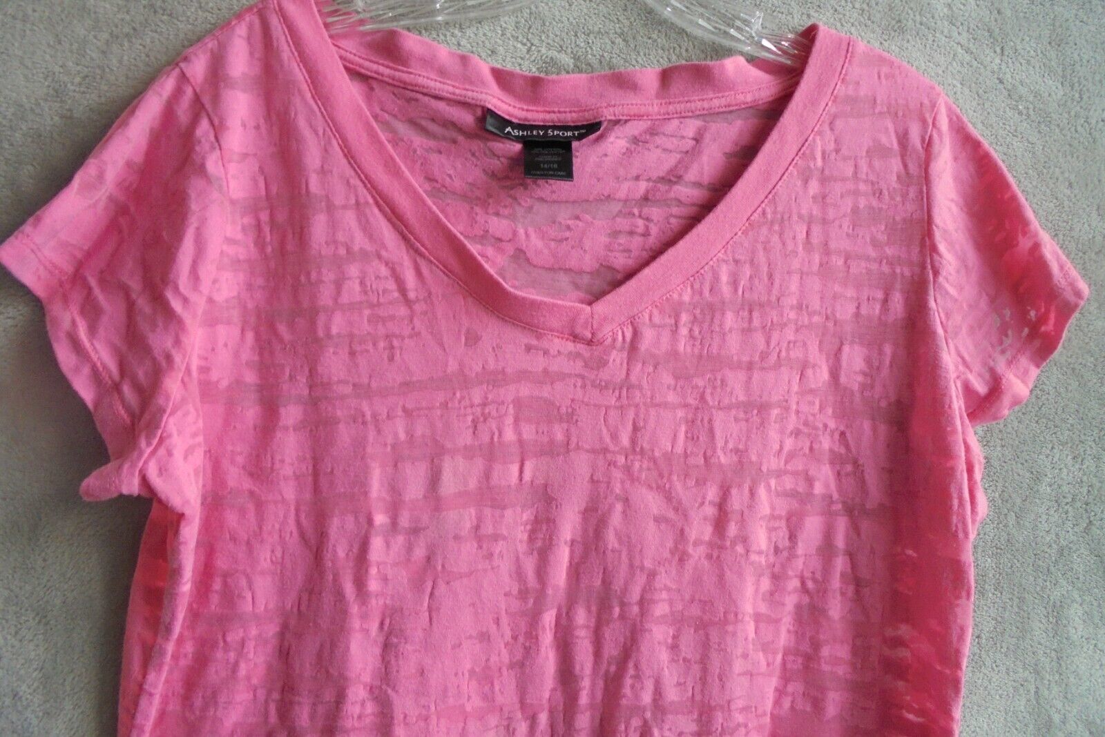 Ashley Sport Womens 14 16 XL Pink Top Semi Sheer Cap Short Sleeves Summer