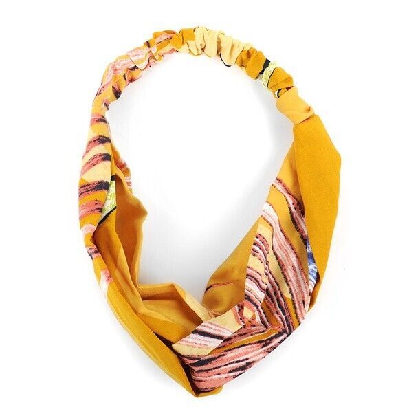 Nollia Ladies Criss Cross Elastic Stretch Headband Gold Tropical Flower
