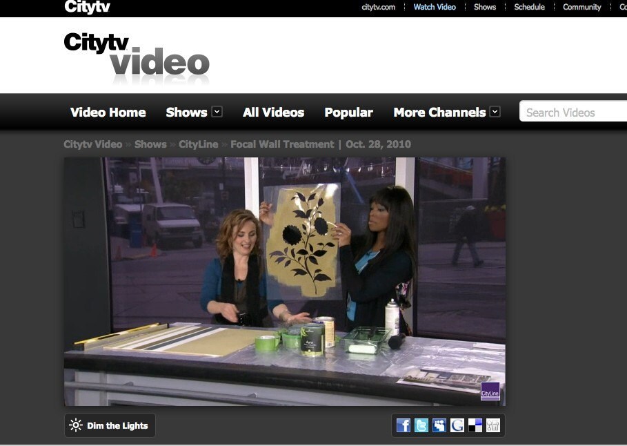Our Blooming Branches stencil was recently featured and demonstrated on City Line TV in Canada! Talented Sharon Grech of Benjamin Moore Paint created a beautiful and unique painted vignette with this stencil using a dense foam roller and Aura paint.