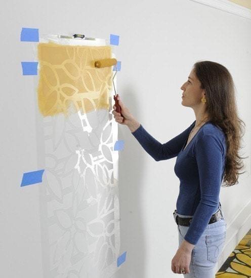 This is our favorite wall stenciling tool: Dense Foam Roller. The easiest and fastest way to apply stenciled image to a wall. Perfect for wall-art stencils, allover patterns such as damask and scroll, faux frescoes and murals.