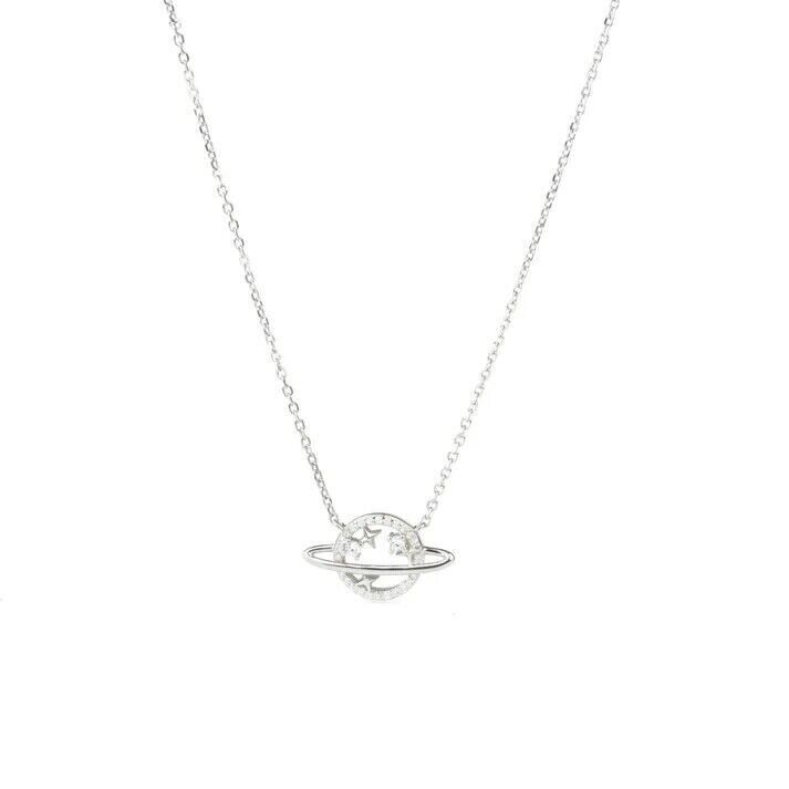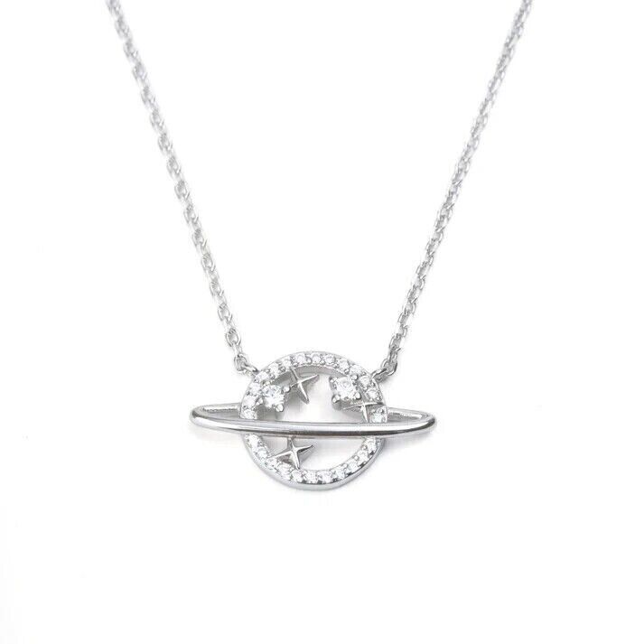 1Ct Round Cut Lab Created Diamond Galactic Saturn Pendant 14K White Gold Plated