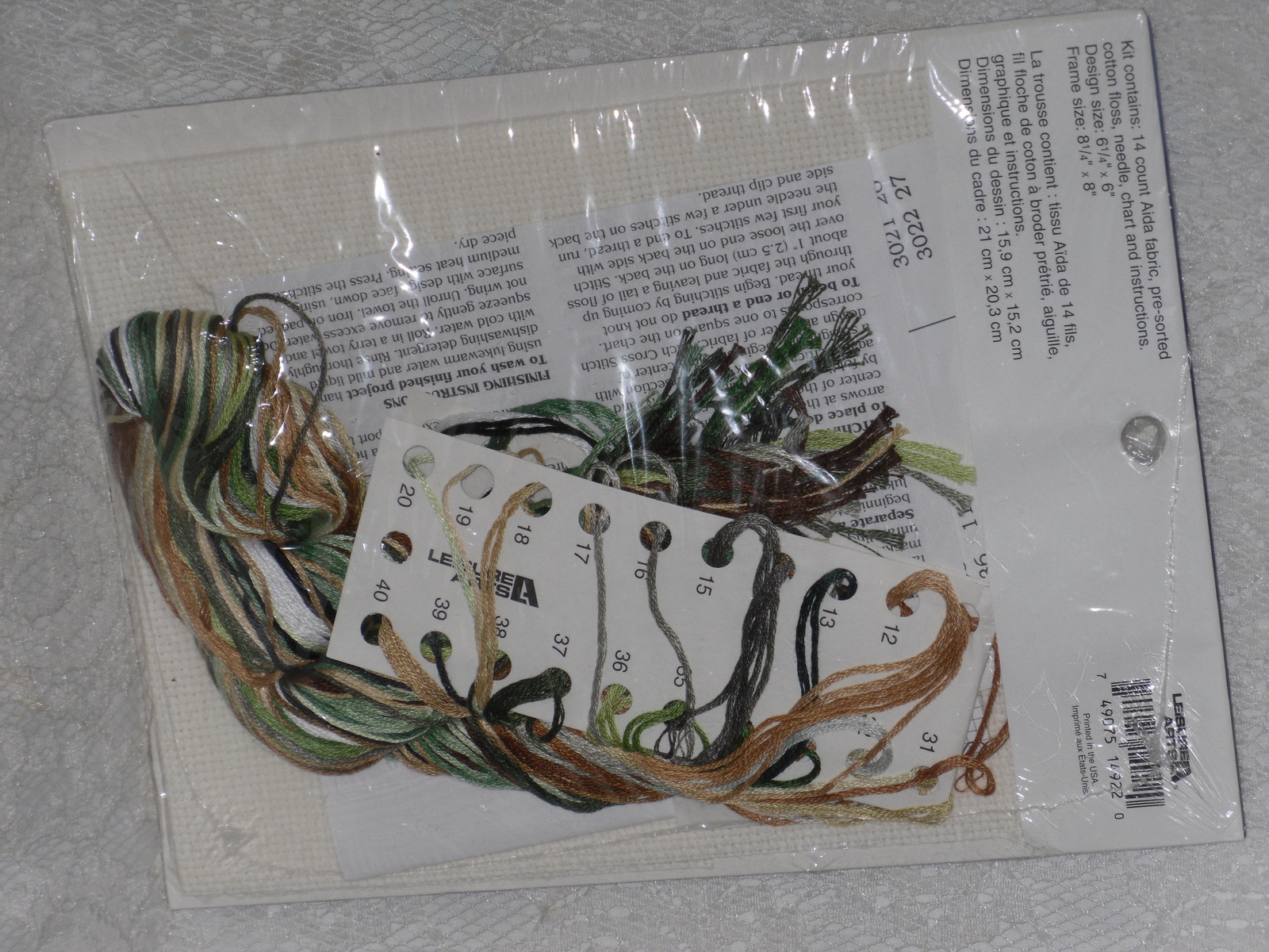 Kit Contains: 14 count Aida fabric, pre-sorted Cotton Floss, Needle, Chart Instructions