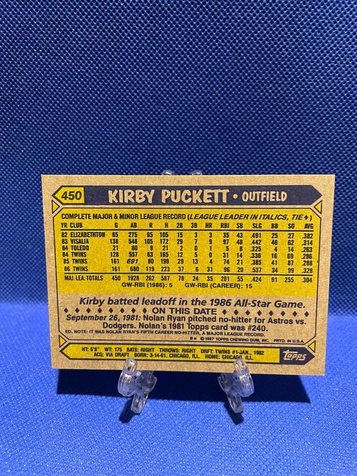 1987 Topps - Tiffany #450 Kirby Puckett