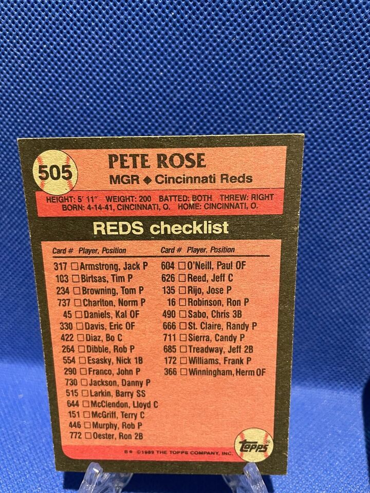 1989 Topps - Team Checklist #505 Pete Rose