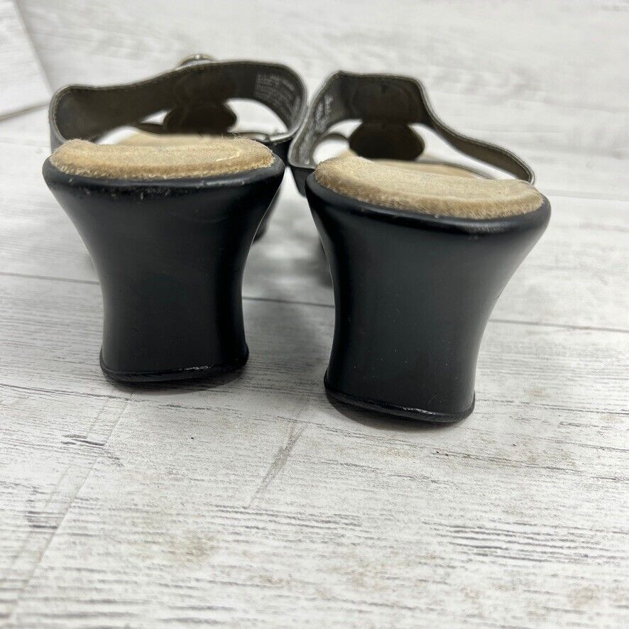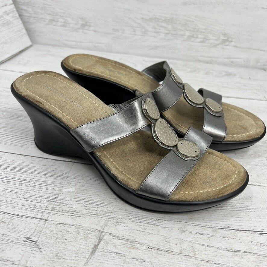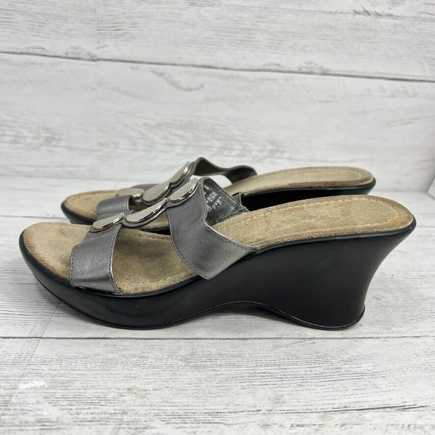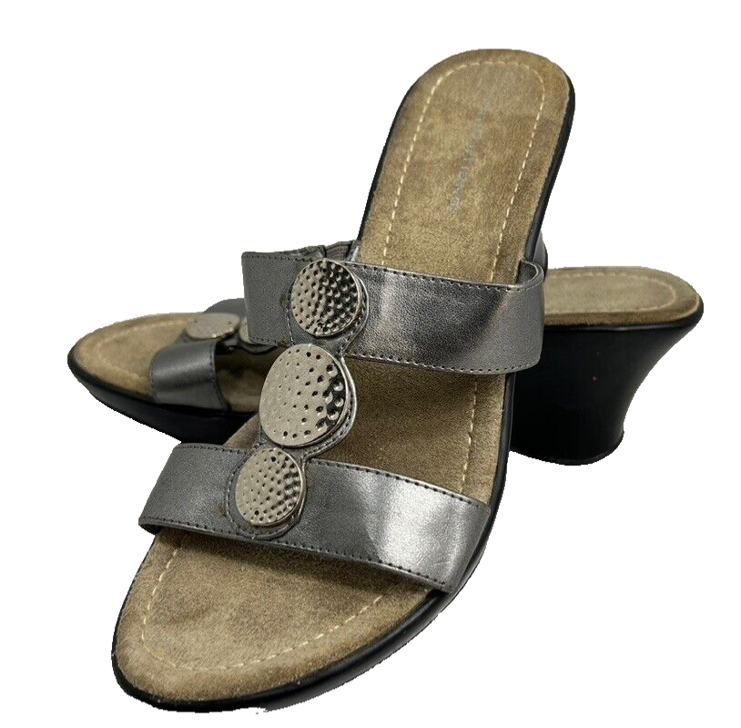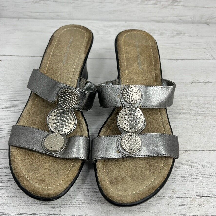 Predictions Size 7 Silver Metallic Strap Wedge Heel Sandals Silver Hammered Disc