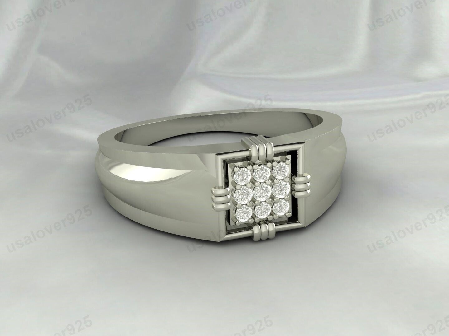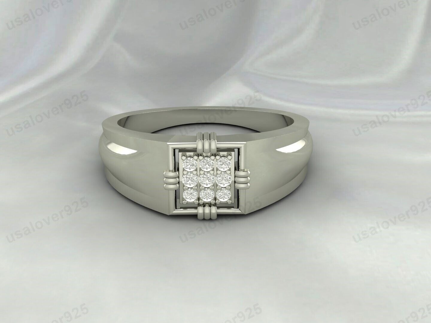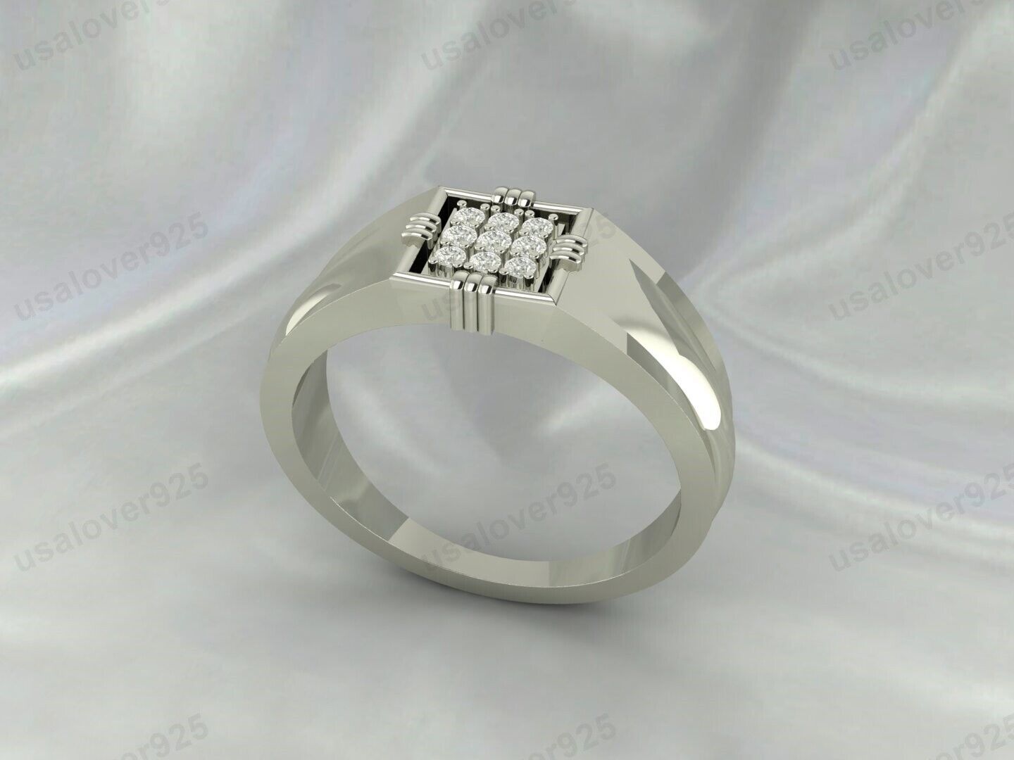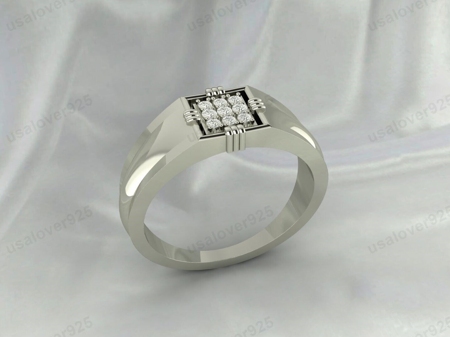 CZ Diamond Stone Signet Ring, Handmade 925 Sterling Silver Unisex Jewelry