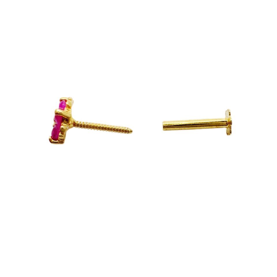 22ct Yellow Gold Three Stone Ruby Emerald Nose Stud/Nose Pin/Nose Piercings