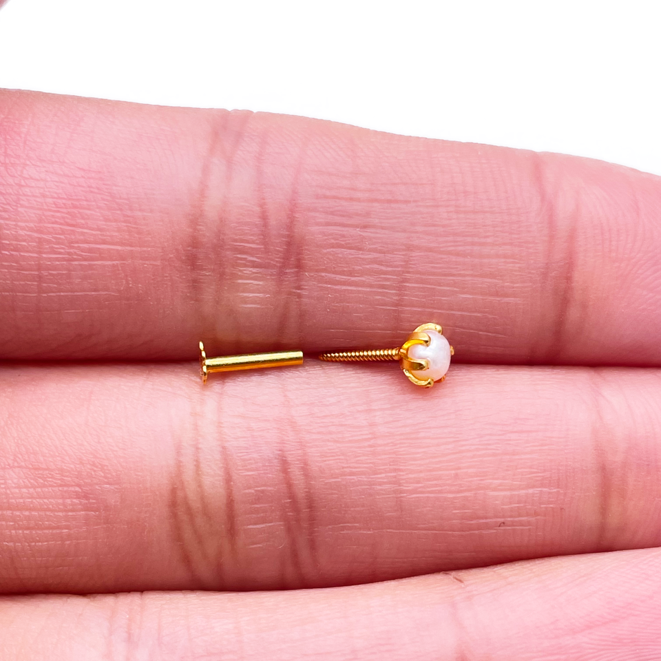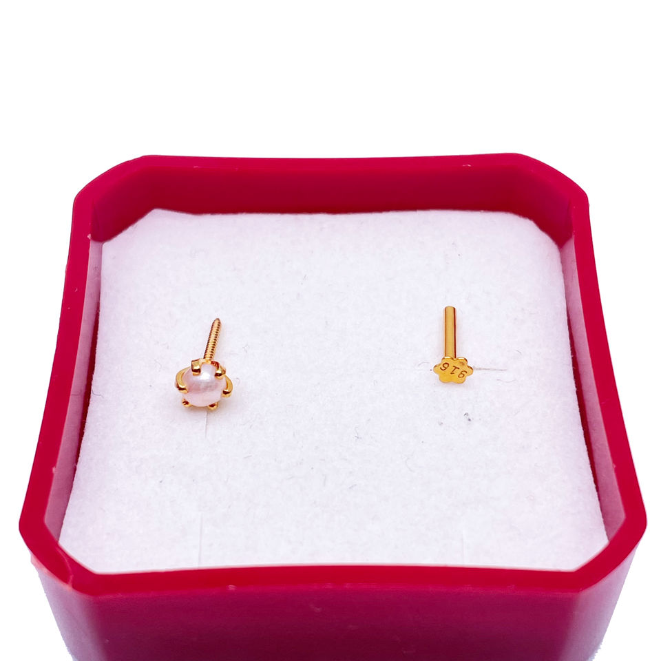 22ct Yellow Gold Freshwater Pearl Claw Single Nose Stud 4.1mm