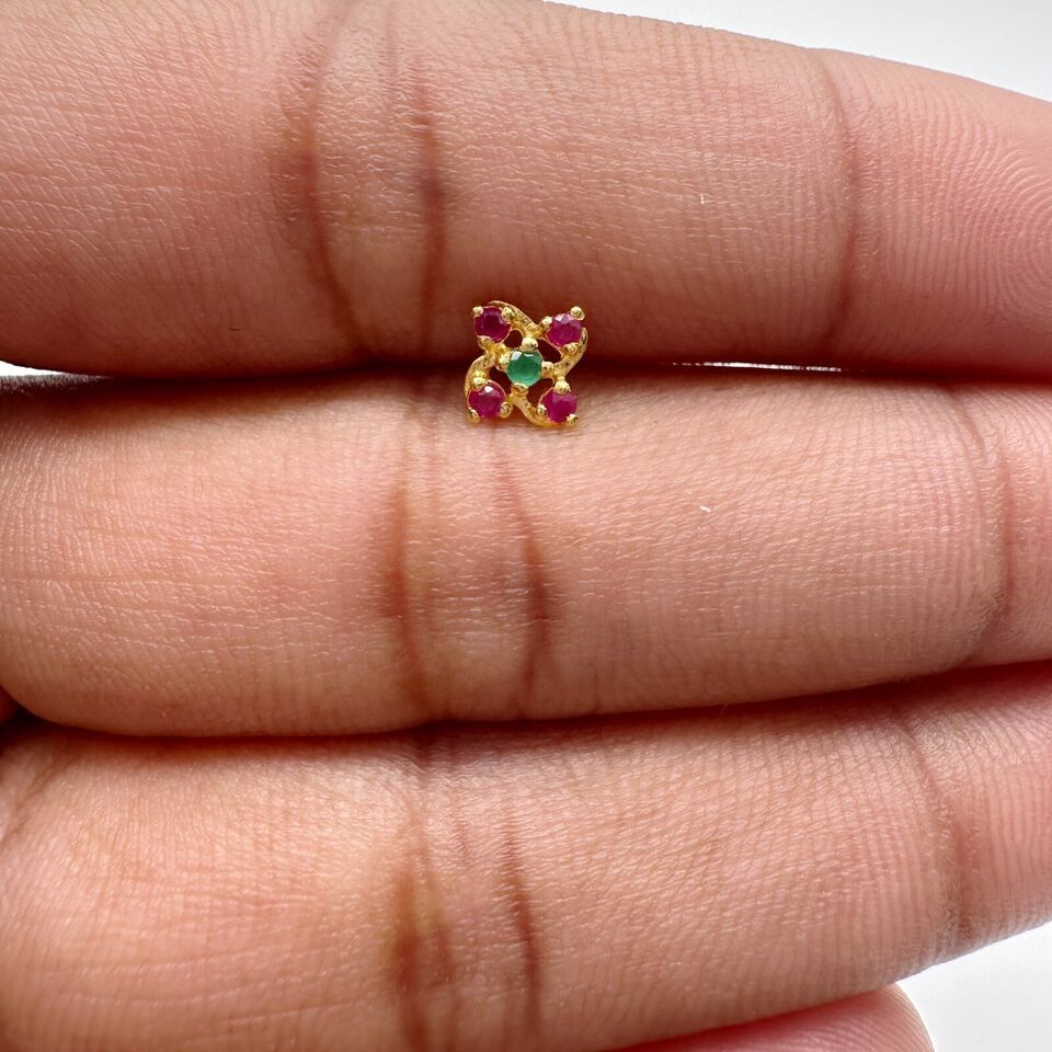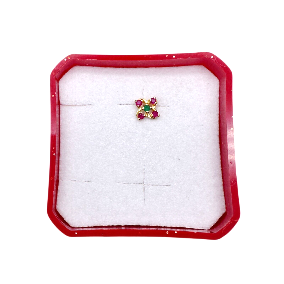 22ct Yellow Gold Natural Ruby & Emerald Nose Stud/Nose Pin/Nose Piercings
