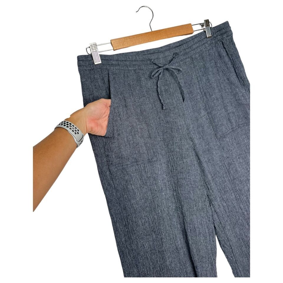 J Jill Pure Jill Pants Women's Linen Crop Pull On Textured Beachy Cottage Blue