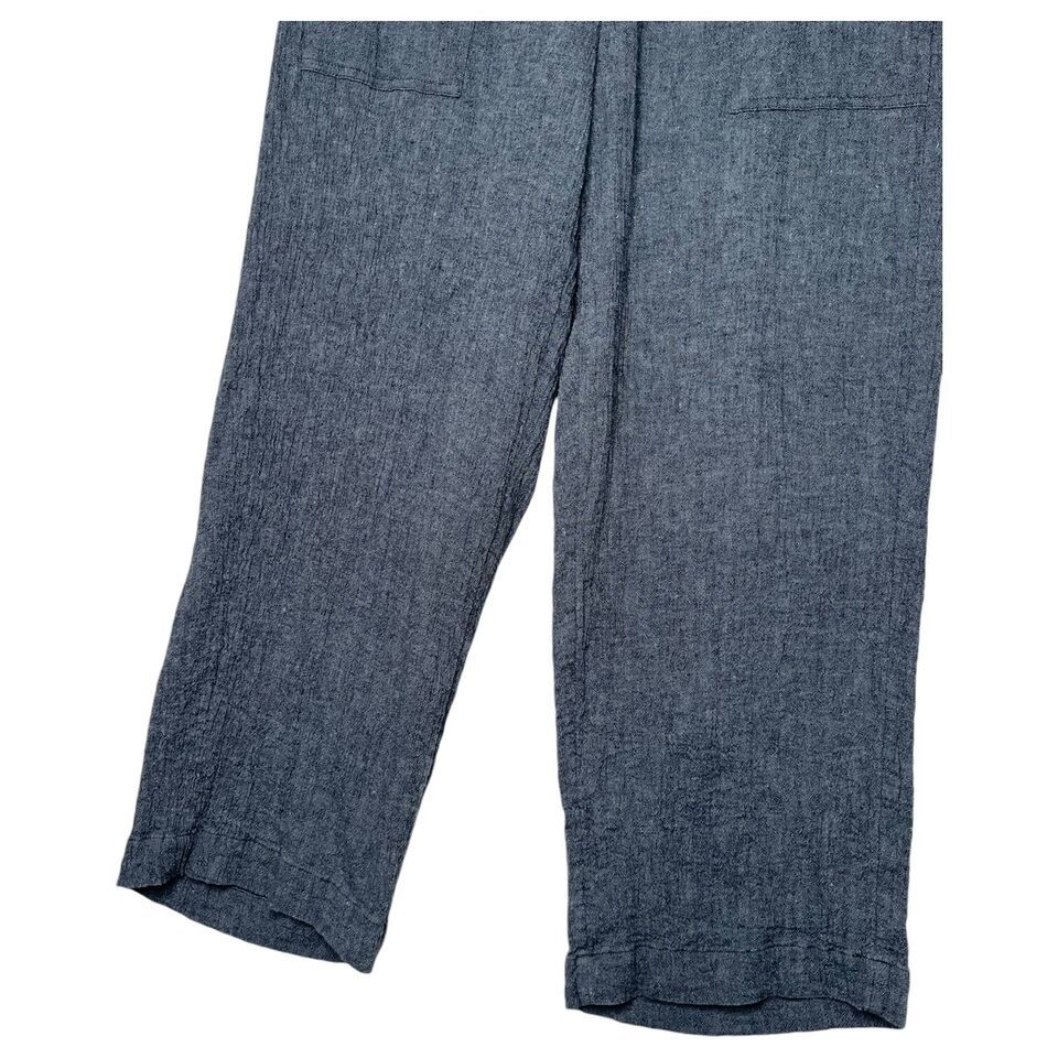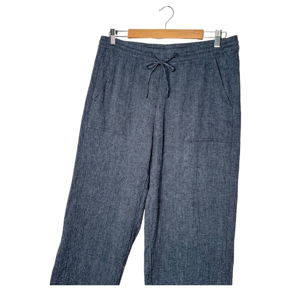 J Jill Pure Pants Womens M Linen Crop Pull On Textured Beachy Cottage Boho Blue