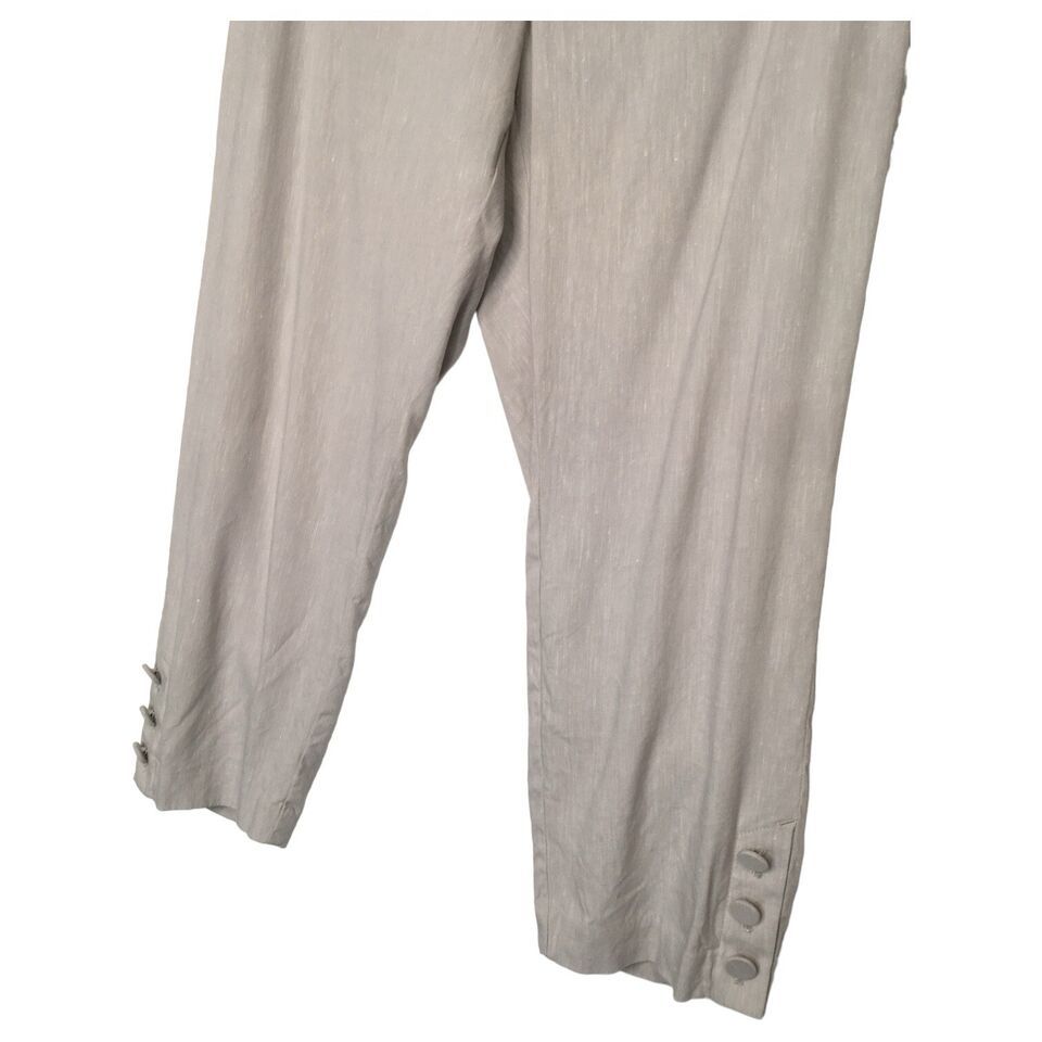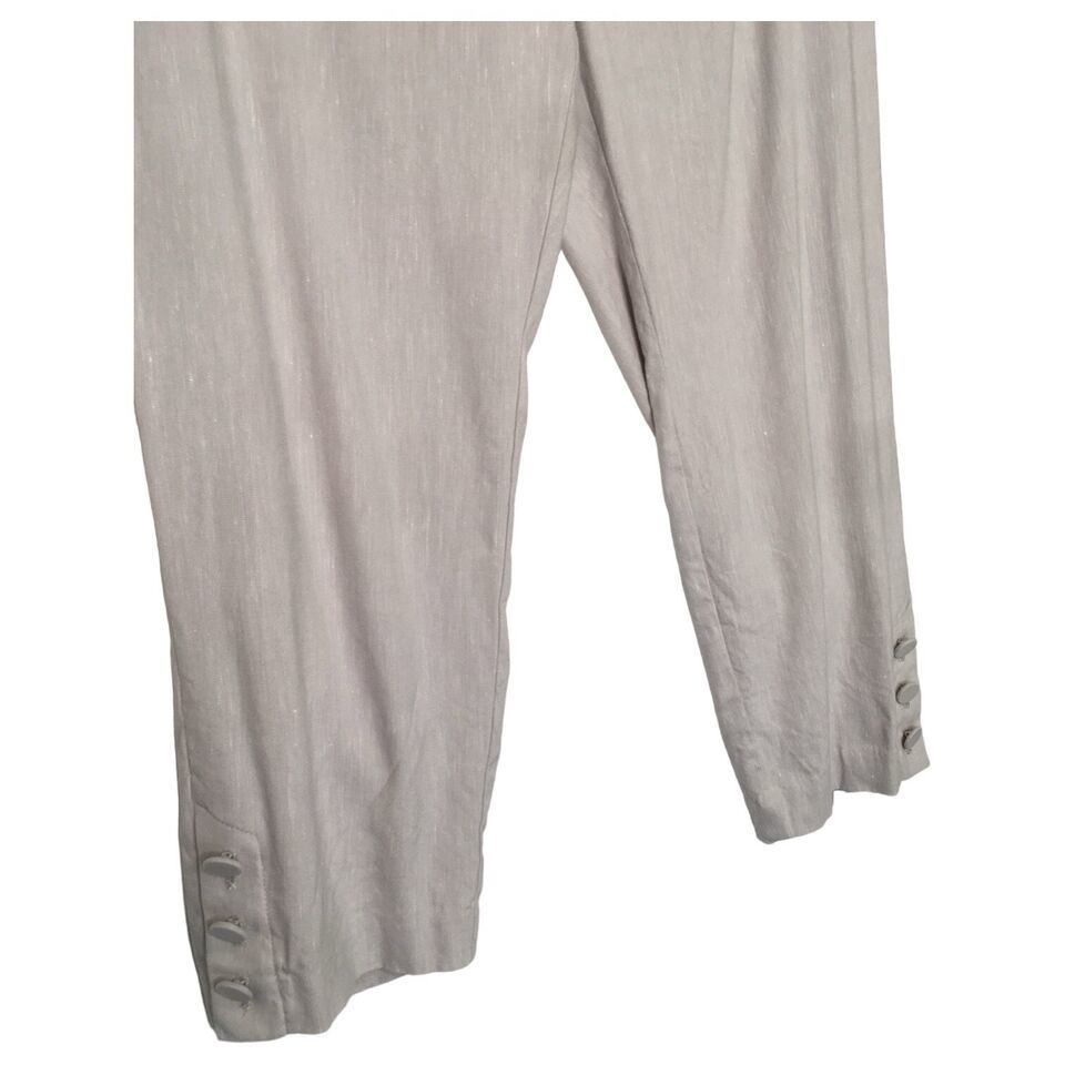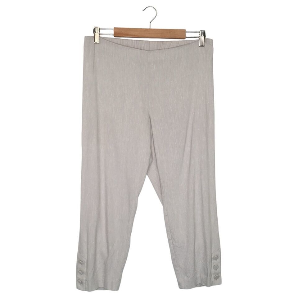 J Jill Pants Womens M Linen Stretch Capri Button Bottom Beachy Cottagecore Gray