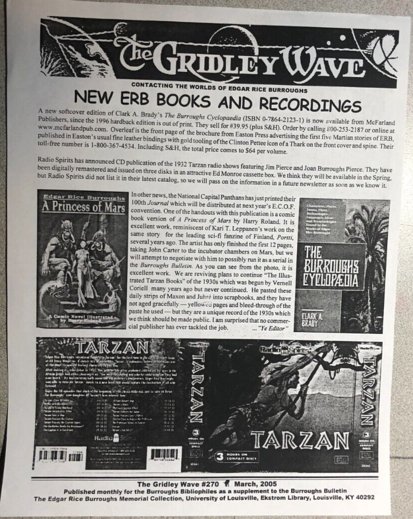 THE GRIDLEY WAVE #270 (2005) 2-page Edgar Rice Burroughs Tarzan fanzine