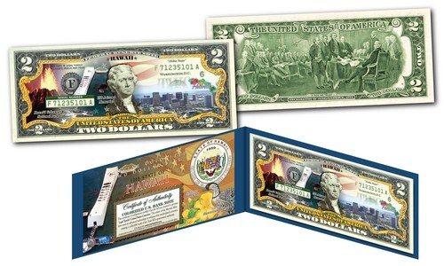 HAWAII $2 Statehood HI State Two-Dollar U.S. Bill *Genuine Legal Tender* w/Folio