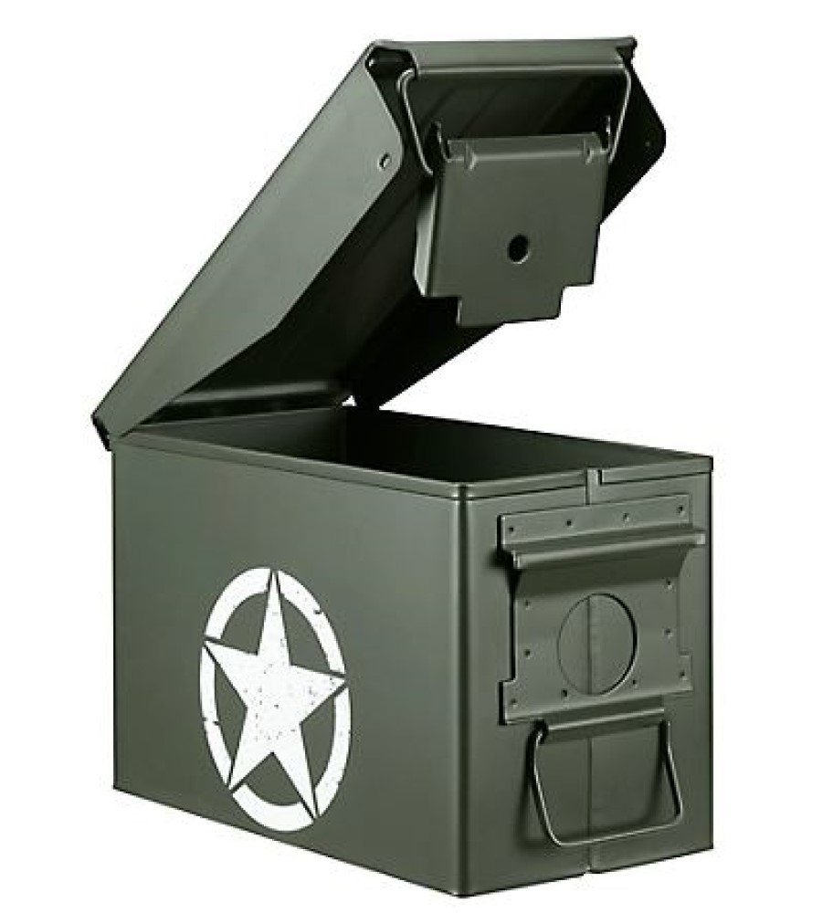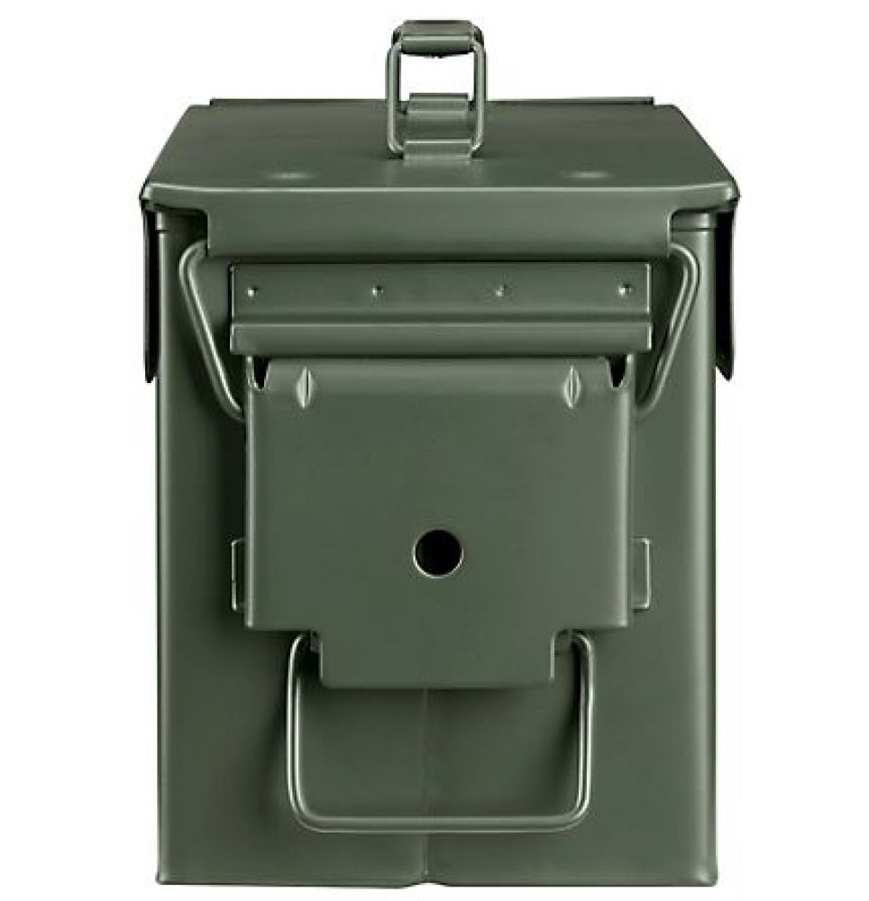 This treeline ammo can has a classic military design. Its rugged powder-coated steel construction makes it an excellent storage option. The ammo can also features a gasket-sealed lid with heavy-duty latch to keep the lid closed, keeping your bullets protected from water and dust.