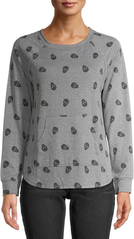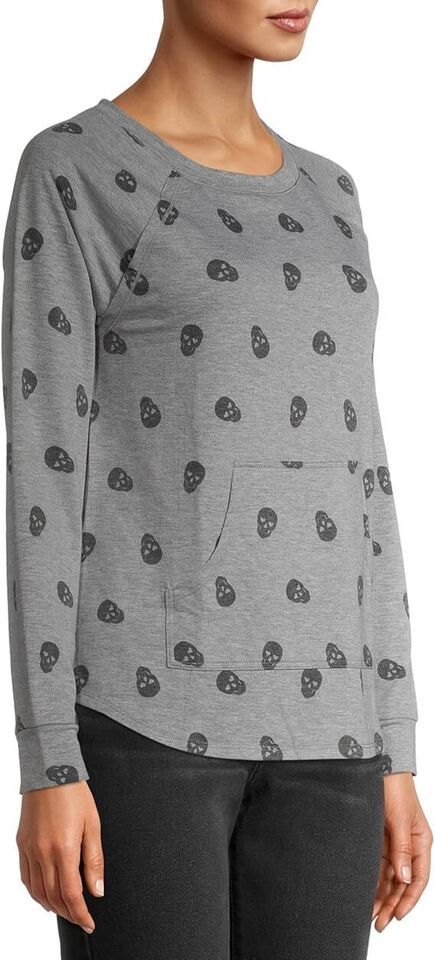 Juniors Printed Skeleton Head Light Pullover Sweatshirt Size Large (11-13)