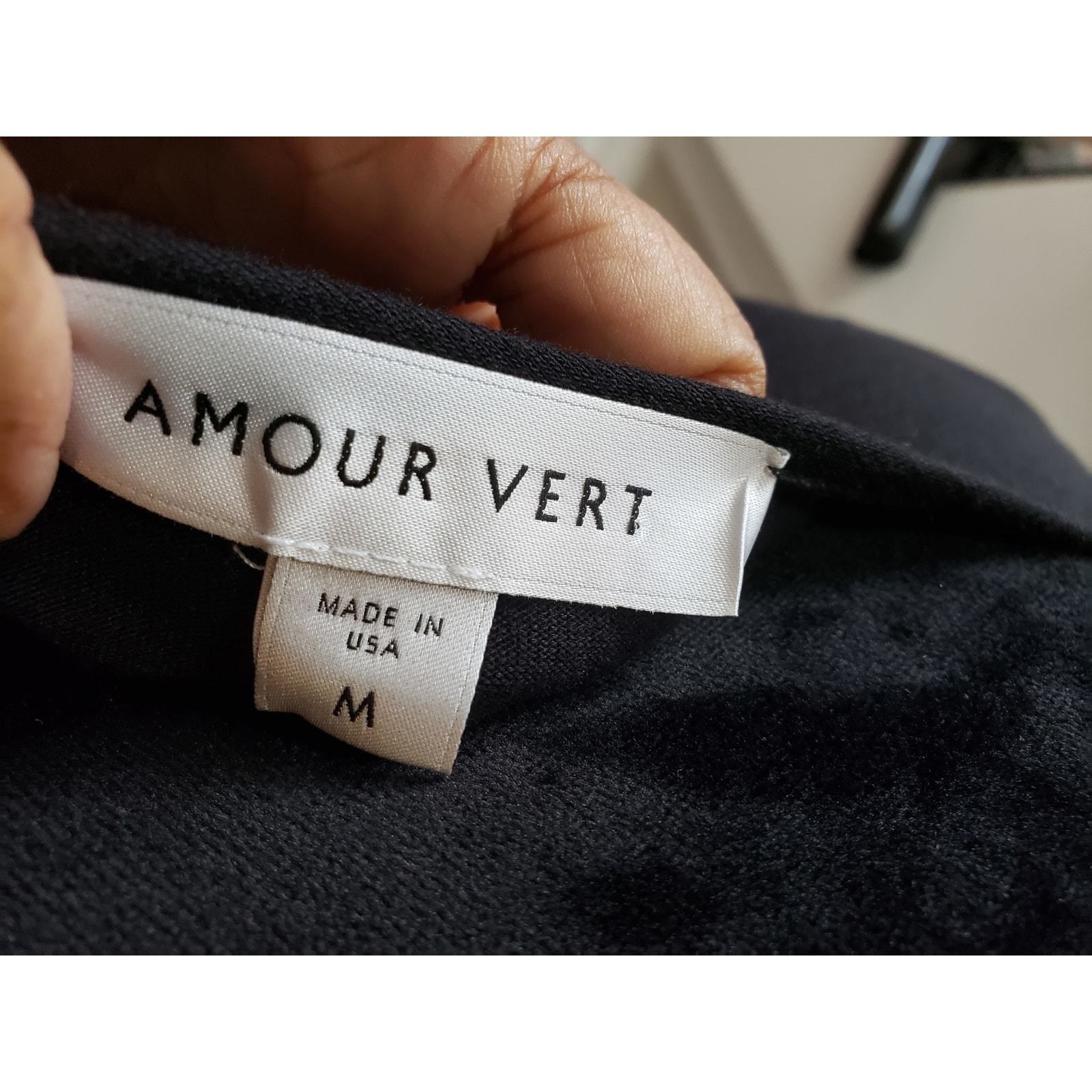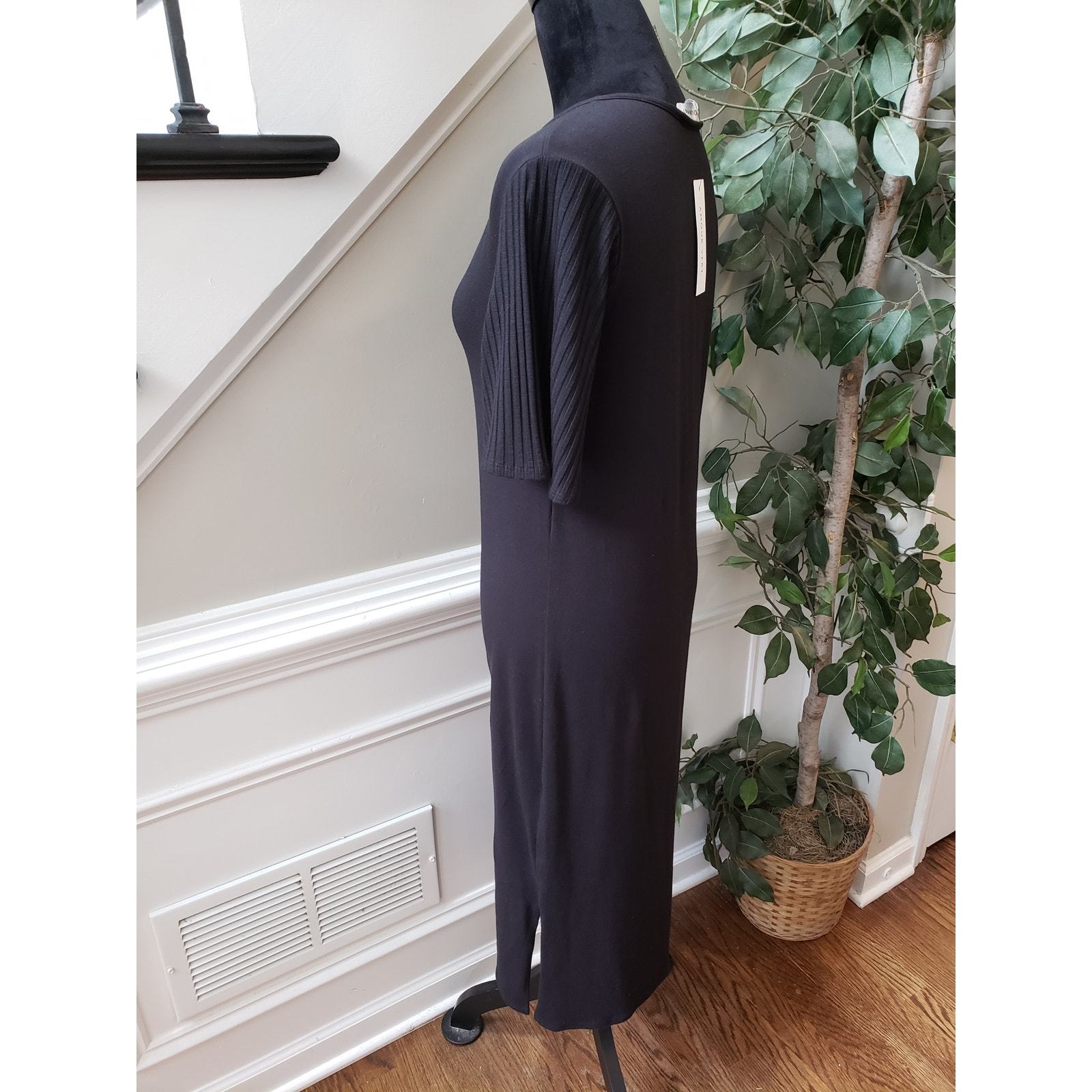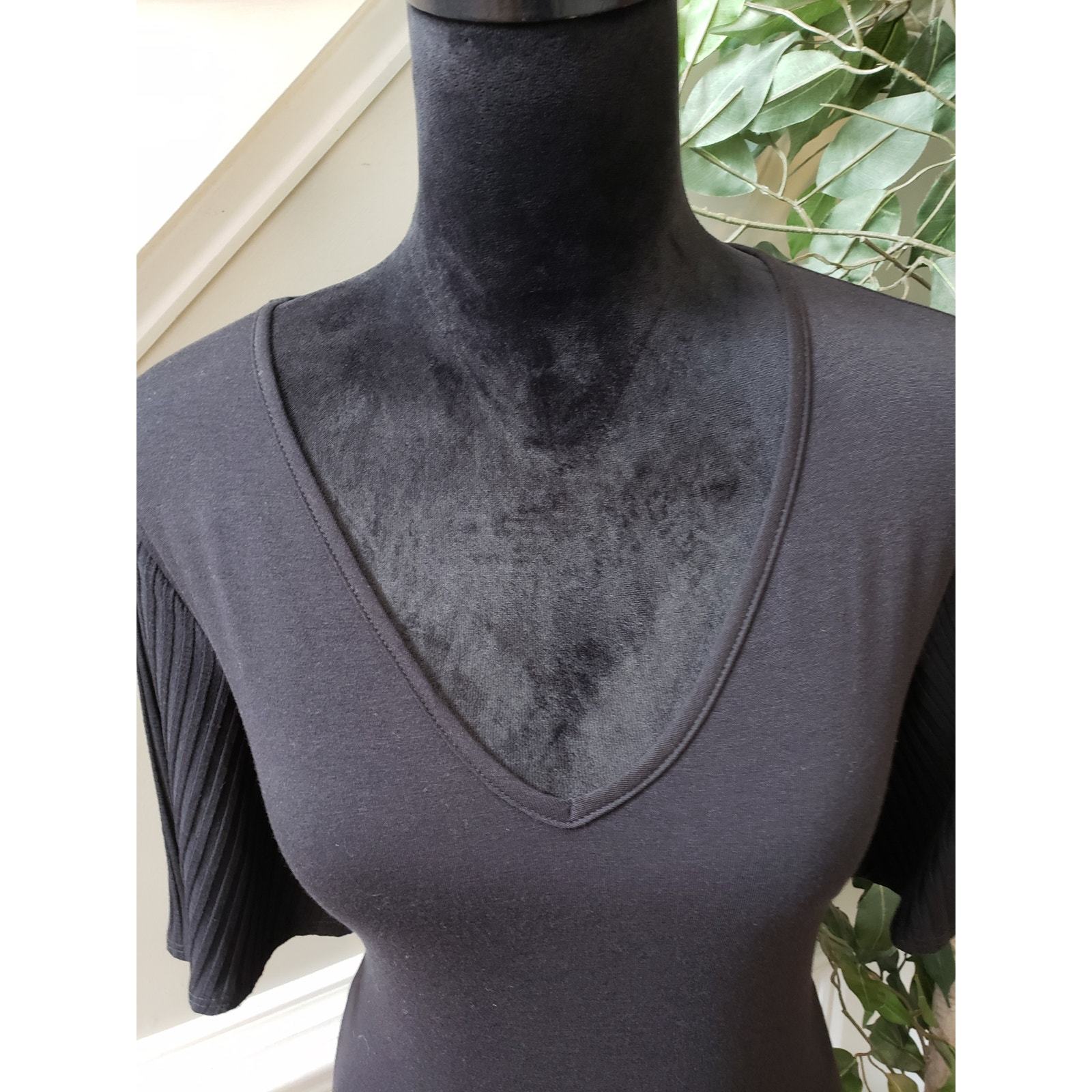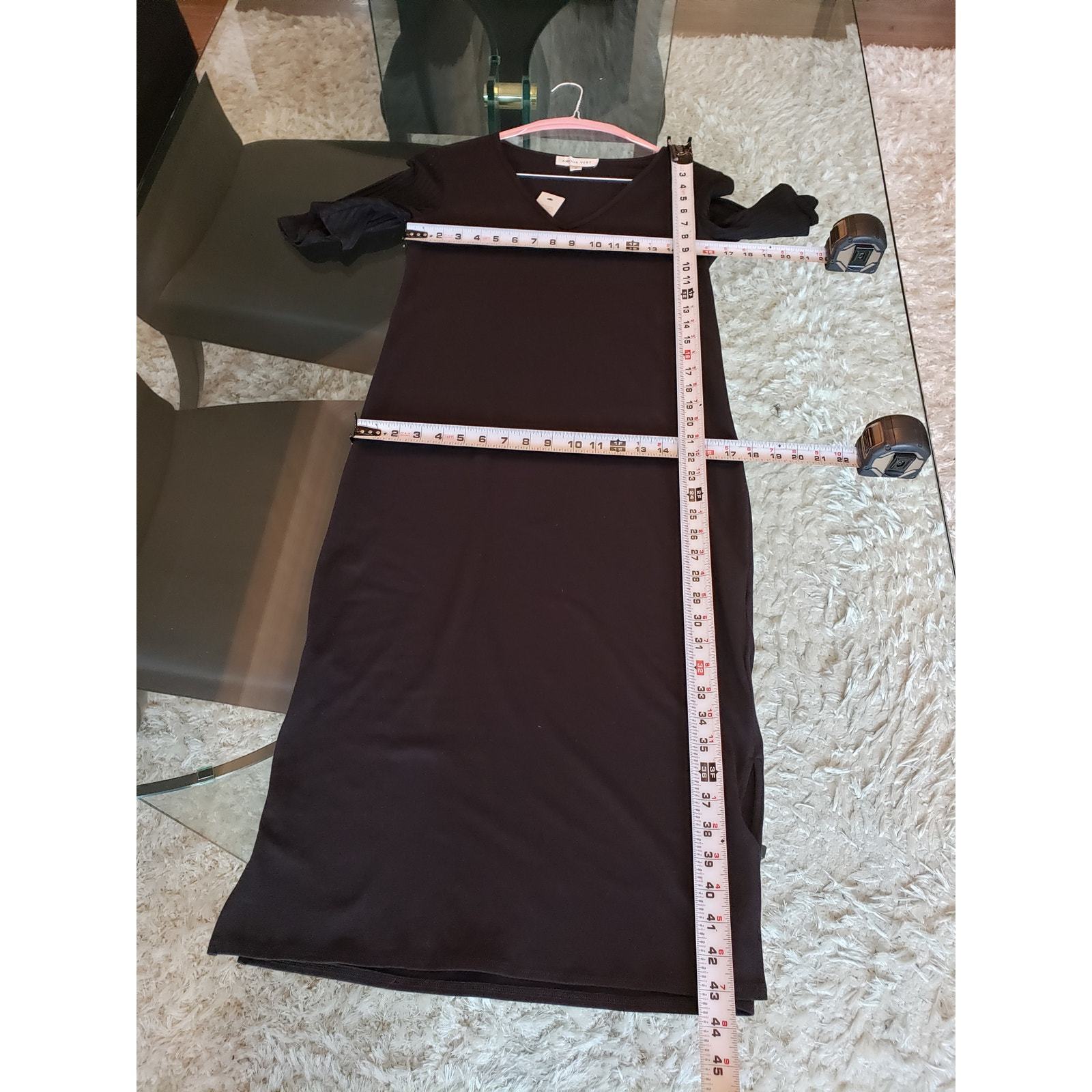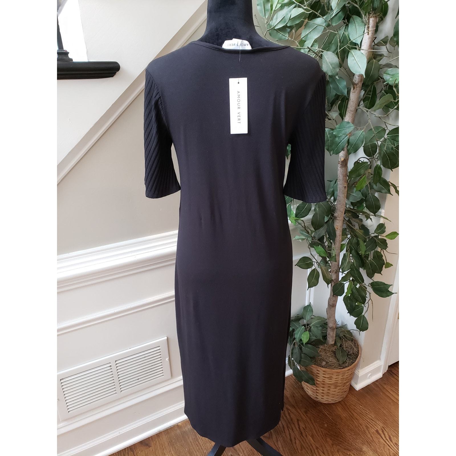Amour Vert Mizu Knee Length Dress Women Medium Black Solid Short Sleeve V-Neck