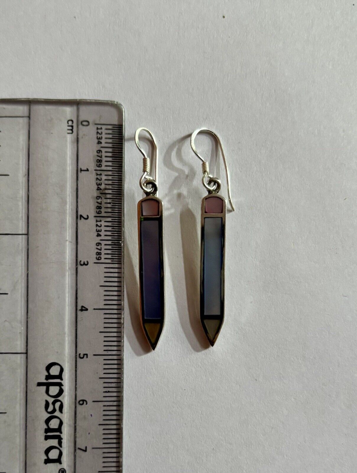 925 Sterling Silber + Perlmutt Handarbeit oxidiert Cutwork Ohrringe 4,41 gm