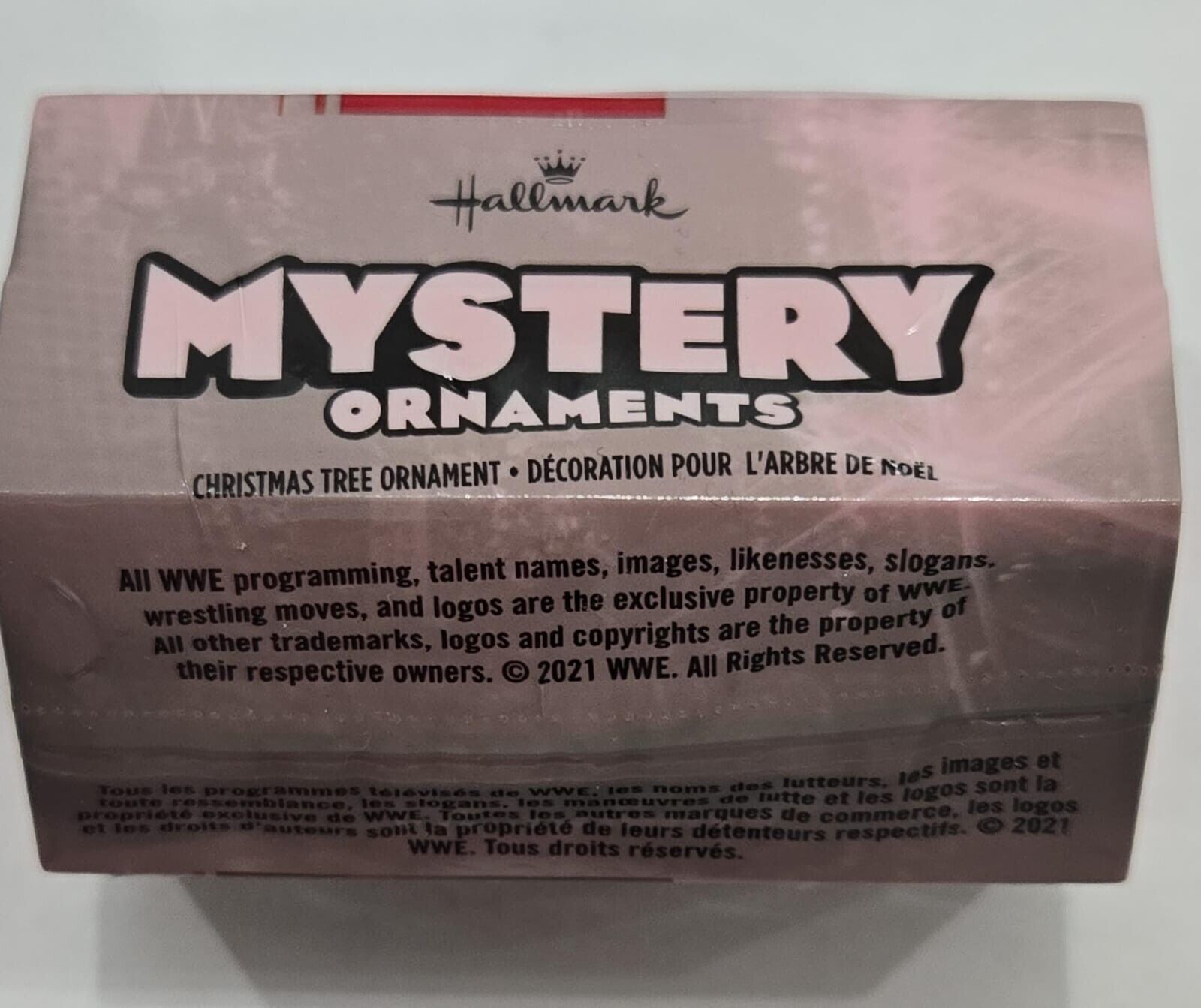 Step into the ring and add even more anticipation to the holidays with this surprise WWE Christmas tree ornament! Each mystery box contains one (1) stylized ornament packaged at random, and comes ?blind? packaged in a sealed box to open at home. Possible WWE personalities include: John Cena, Roman Reigns, Stone Cold Steve Austin, The Rock, Rey Mysterio, The Undertaker and the WWE Championship Belt. Which one will you receive? Collect them all!