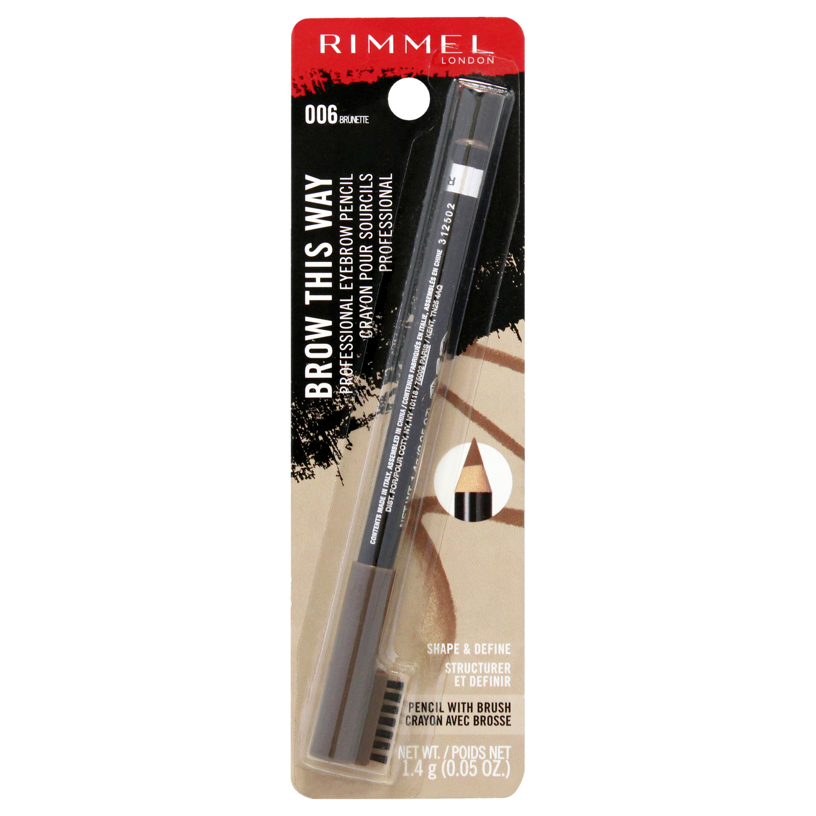 Turn up the Brow wow! The Brow This Way Professional Pencil is Rimmels iconic brow tool: an eyebrow pencil with a built-in brush. Brow pencil with built-in brush to sweep brows into place. Long-lasting color that wont fade or smudge.