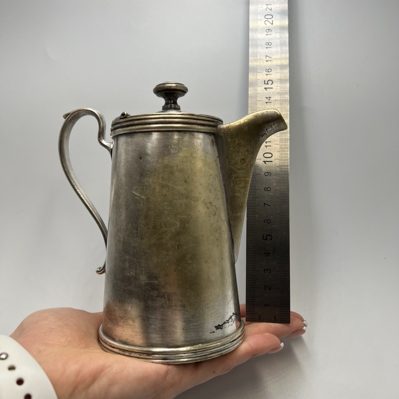 Unusual Brass Silver Plated Coffee Pot Jug Marked Signed Warszawa