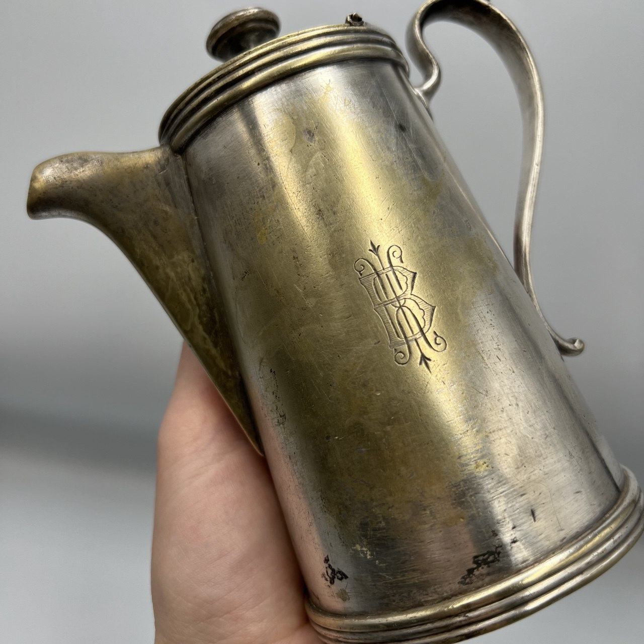 Antique Brass Silver Plated Coffee Pot Jug Marked Norblin co galw Warszawa