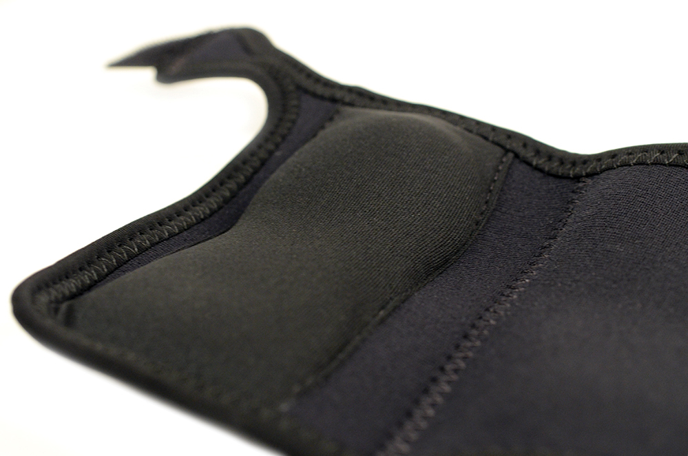 Constructed of neoprene with hook-sensitive laminate for warmth and compression