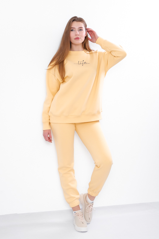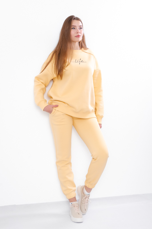 Women?s suit, consisting of trousers and a jumper, is designed for maximum comfort and a stylish appearance. The trousers fit perfectly with an elastic waistband, while the soft jumper provides warmth and coziness. The universal design and neutral colors make the set ideal for everyday wear or casual outings. High-quality materials ensure durability and easy care. This suit will become an essential wardrobe item, adding a touch of ease and modernity to any look.