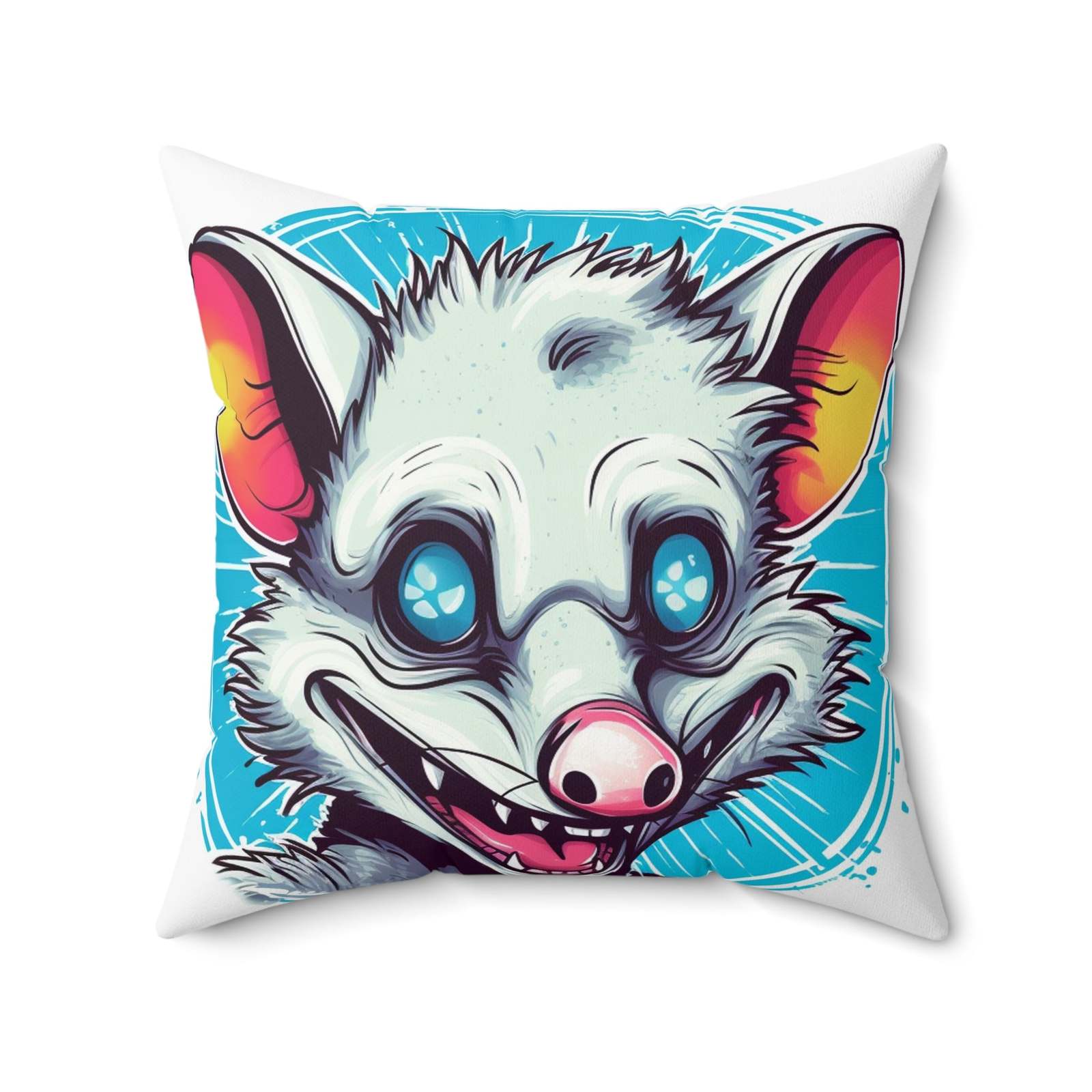 Delightful Opossum Summer Animation Spun Polyester Square Pillow