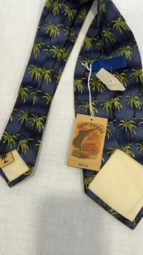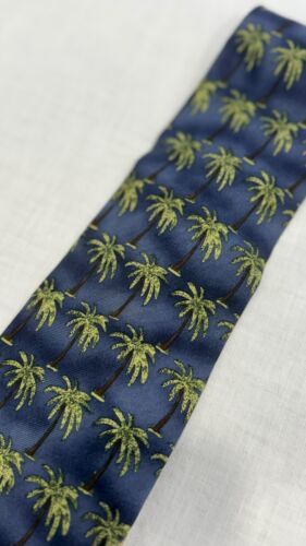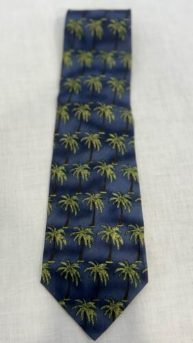 Elevate your style with this stunning Tommy Bahama Silk Necktie. The tie features a beautiful blue color with green and brown palm trees that adds a touch of sophistication to any outfit. Made of high-quality silk material, this tie is perfect for any formal or semi-formal occasion. The brand is well-known for its stylish and durable products, making this tie a great addition to your wardrobe. Suitable for men, this tie is perfect for any fashion-conscious individual who wants to look their best. New with tags.