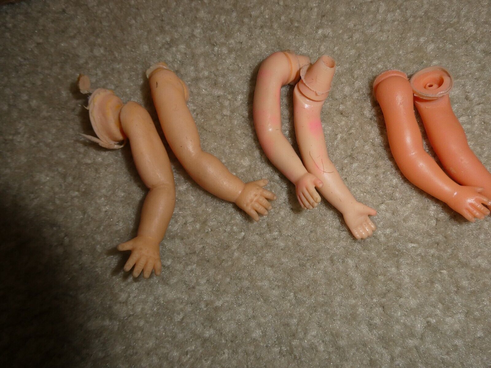Lot of 3 Pairs Vintage 1960s Vinyl Girl Doll Arms 2 1/2" Long
