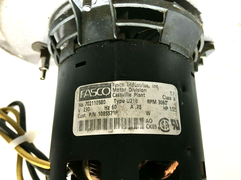 This is FASCO 7021-10580 Draft Inducer Motor 1/25HP 230V 3060RPM 1085571P used part.