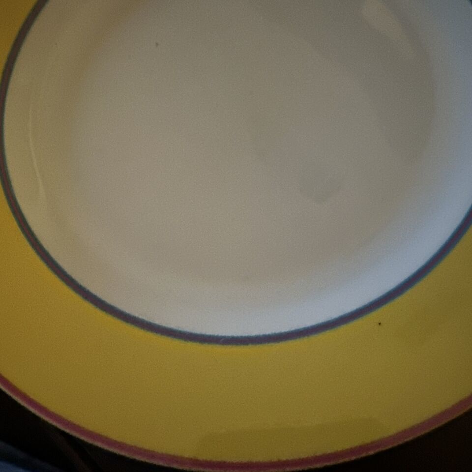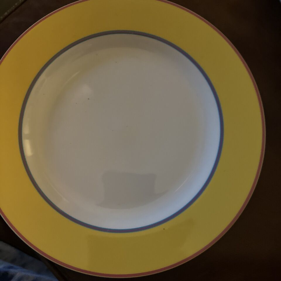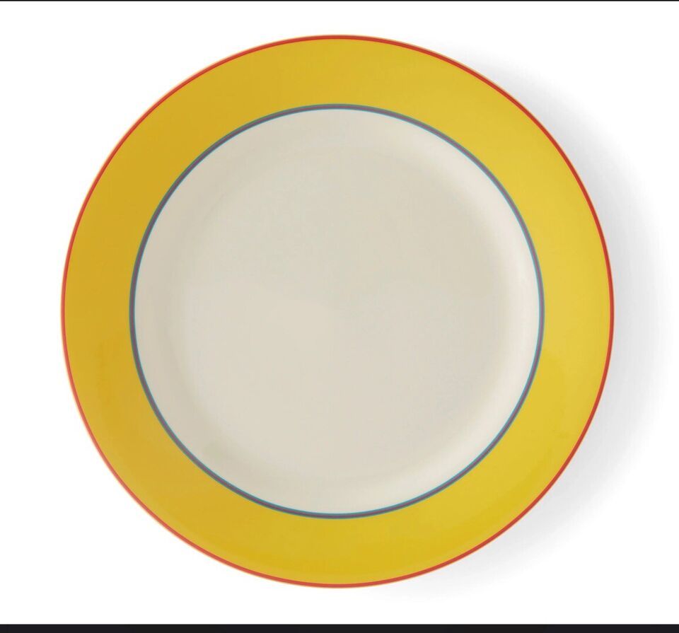 SPODE KIT KEMP TROPICAL 4p SALAD ACCENT PLATES STRIPES 9.25” YELLOW NWT $70