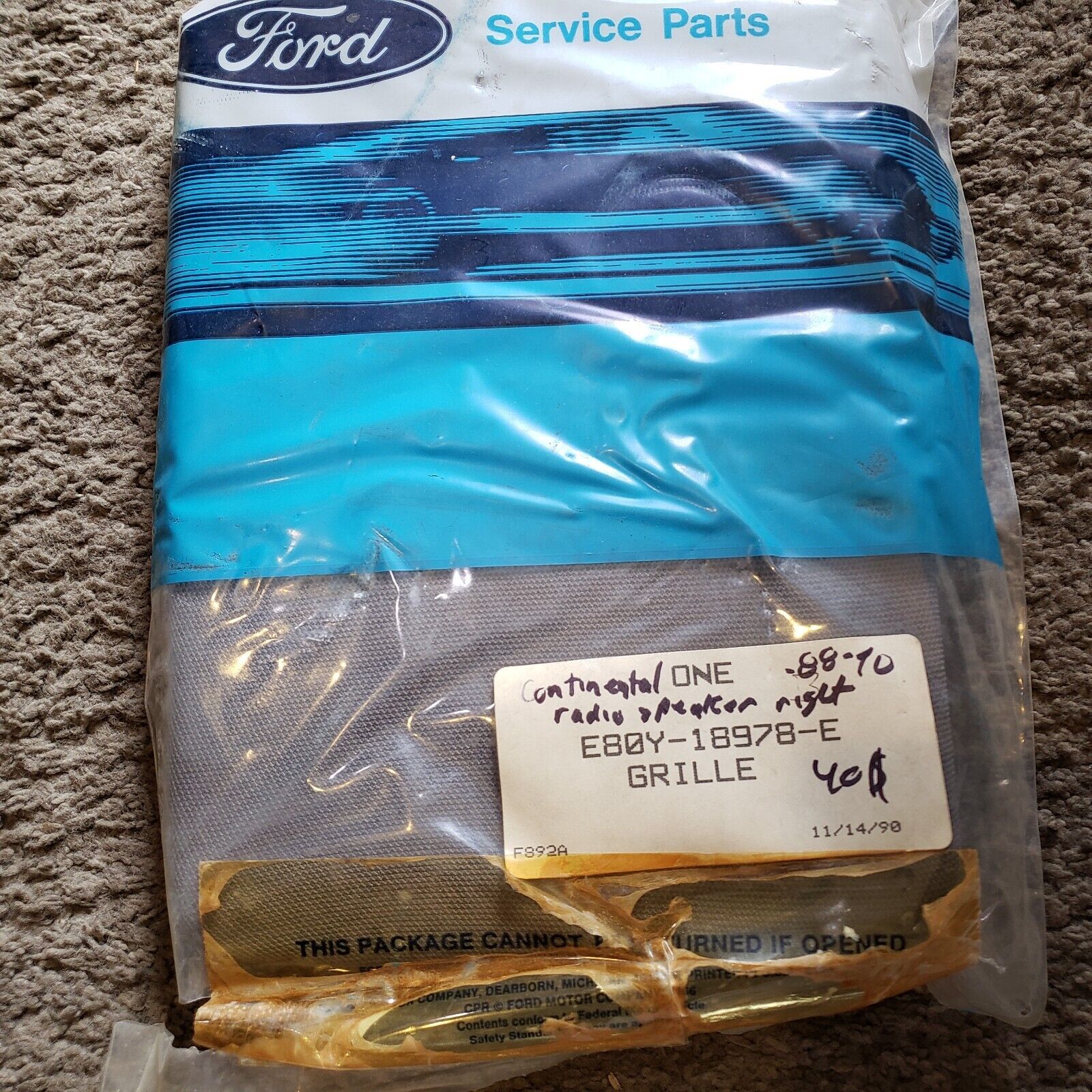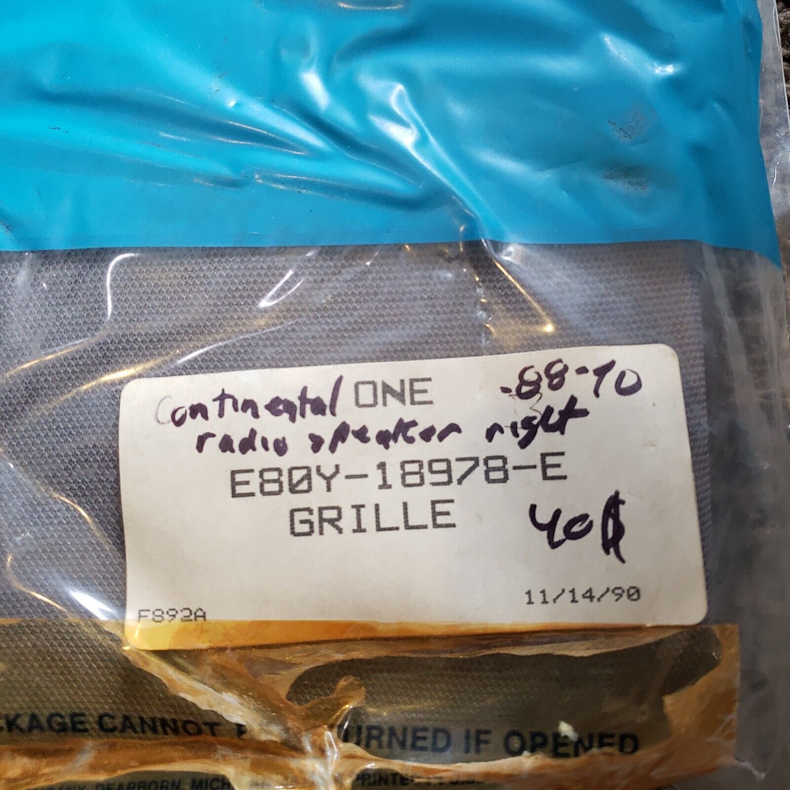OEM NOS Ford Continental Radio Grille Housse Droit Gris 1988