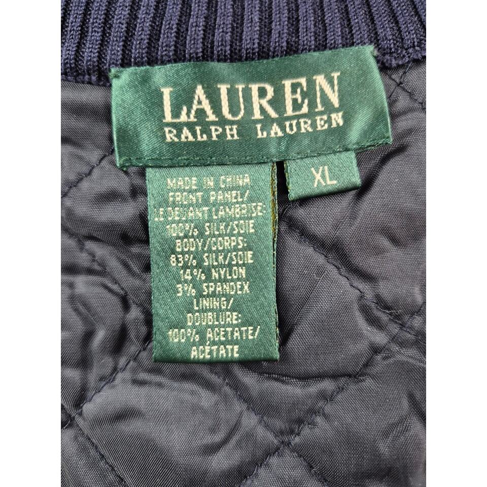 Lauren Ralph Lauren Silk Navy Sweater Vest ribbed trim quilted inside up/down gold zipper Sz XL