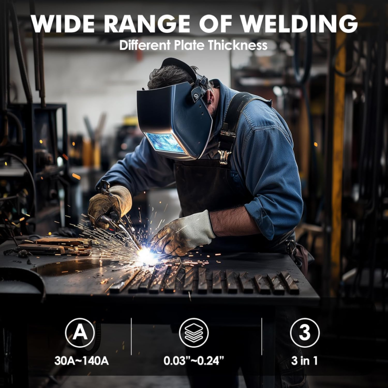 140A MIG Welder, 110V Flux Core MIG Welder/Stick/Lift TIG 3 in 1 Welding Machine