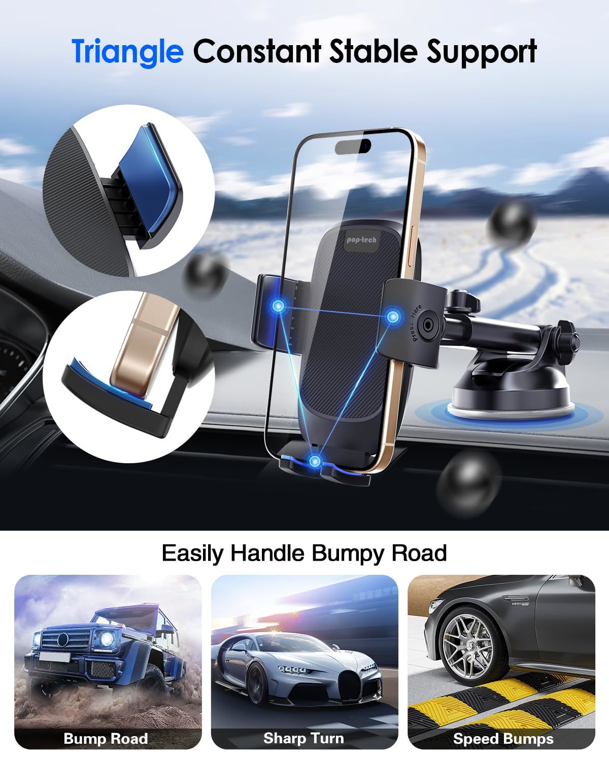 pop-tech Phone Mount for Car, [Military-Grade Suction] Universal Cell Phone Hol