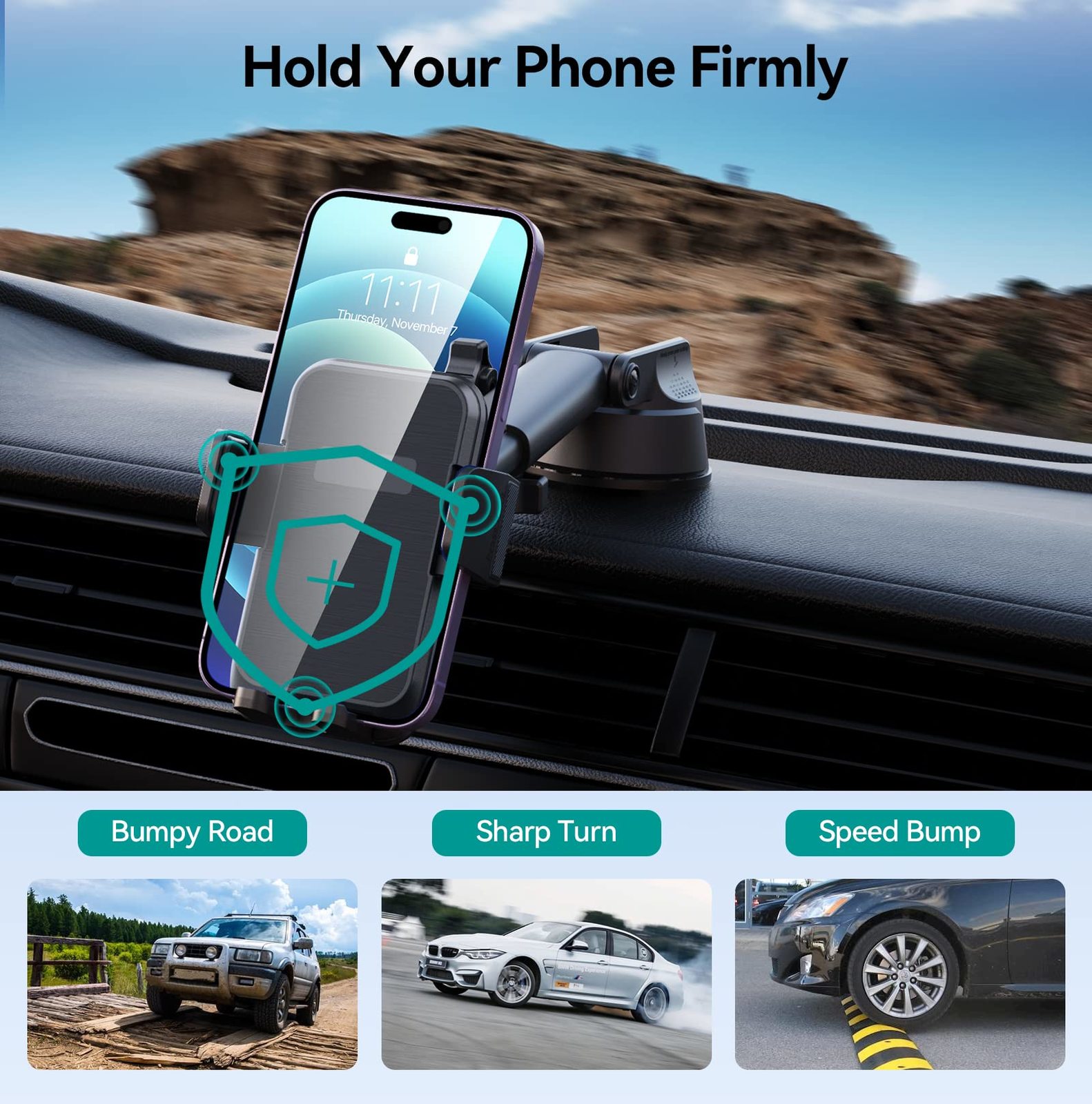 DOLYOFG Car Phone Holder Mount, [Military-Grade Suction & Super Sturdy Base] 3