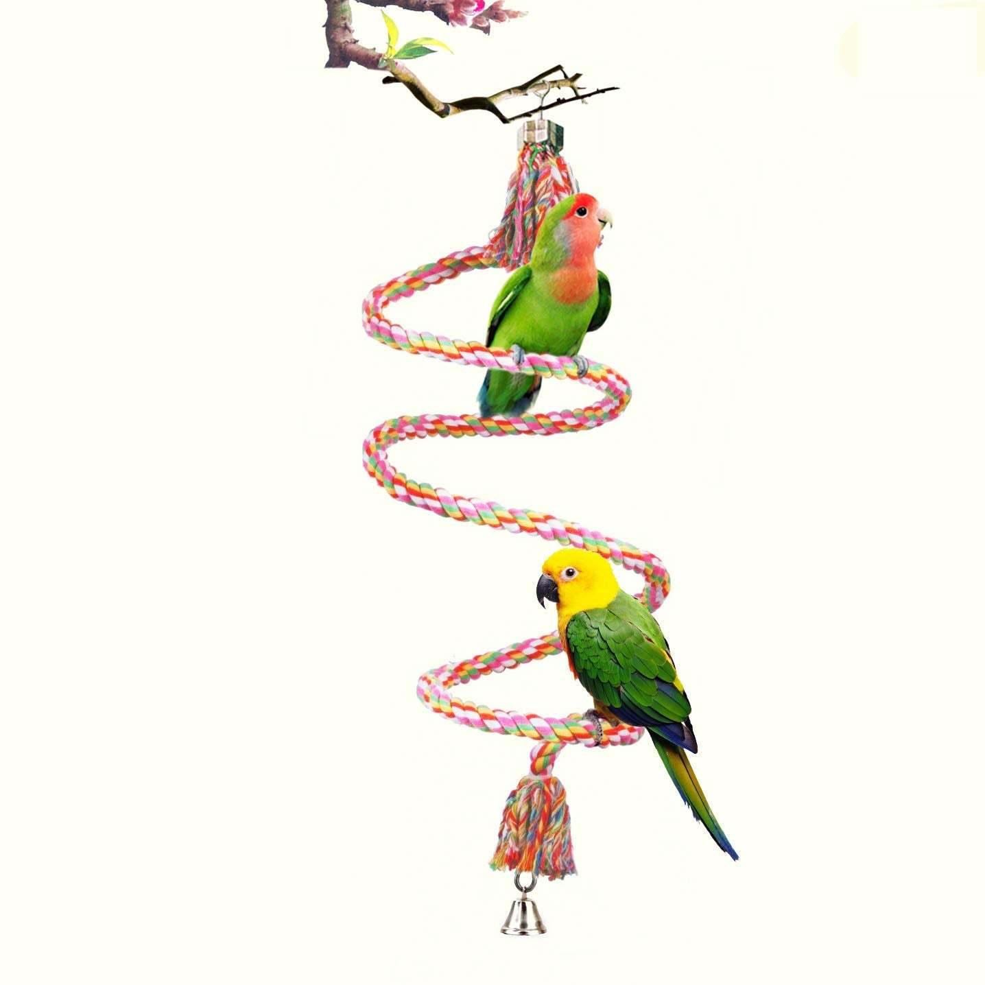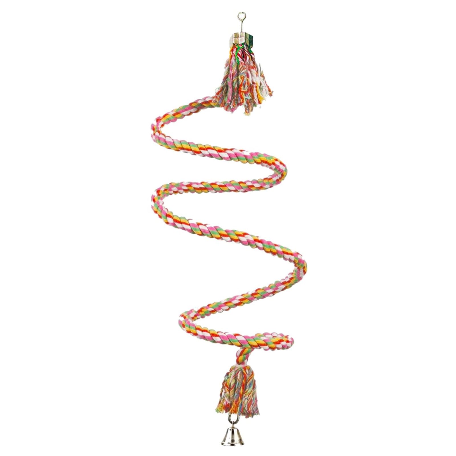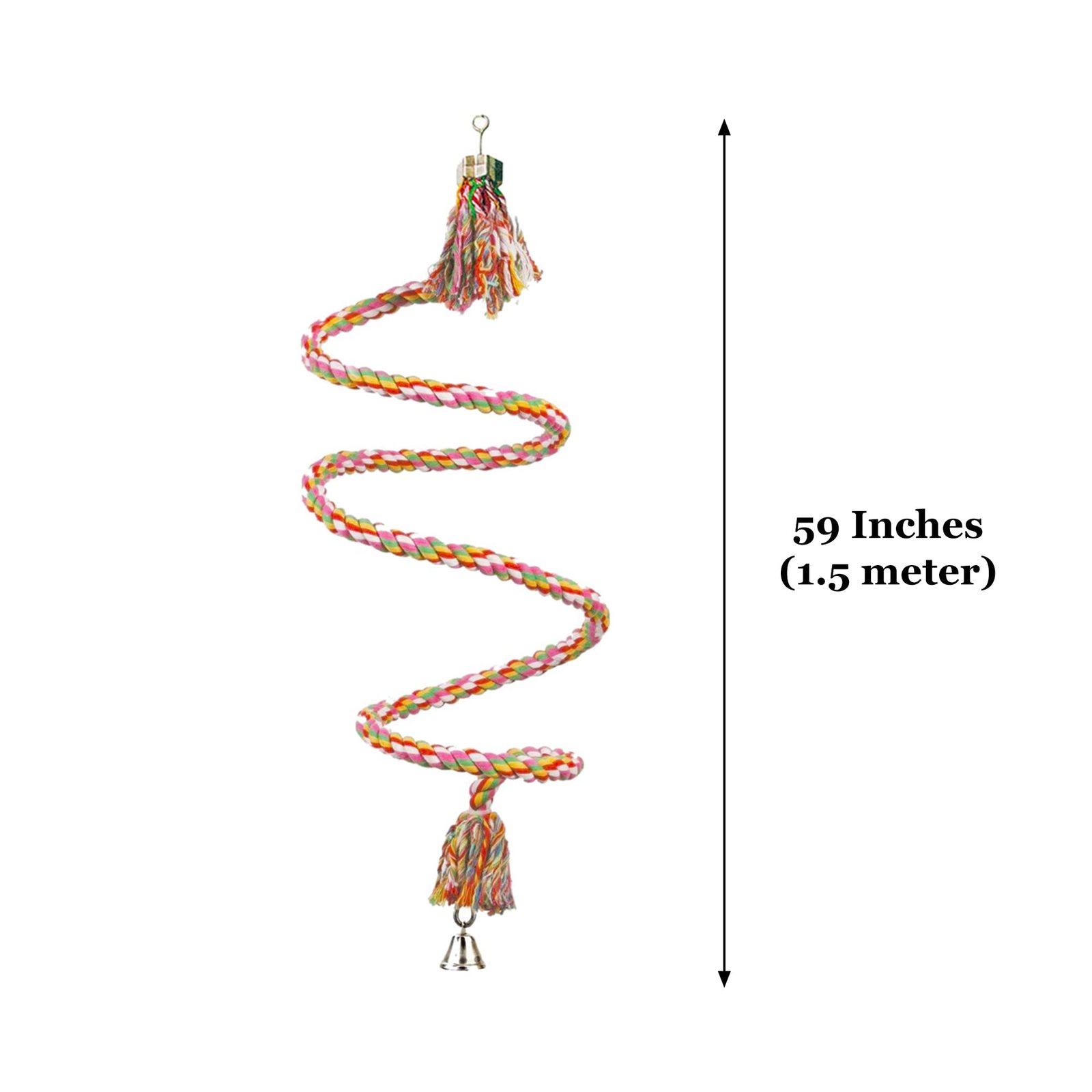 Entertaining Spiral Design With Jingling Bell --- The coiled spiral design of the 59? (1.5 meter) Rope Perch and Chew Toy, keeps pet birds entertained while the gently jingling bell on the end brings even more enjoyment. The little springy bounce is supportive enough to make it a source of fun for your sun conure, doves or love birds. You can either have it straight out or bent, making it flexible.