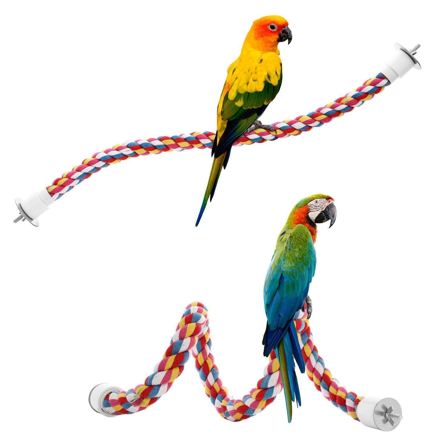 The comfortable bird cotton rope provides secure footing, it?s made of the soft, durable, multi-colored cotton (using non-toxic food dyes) and the comfortable-to-grip rope that wrapping around flexible metal, making it possible to be bent to more create unlimited positions.