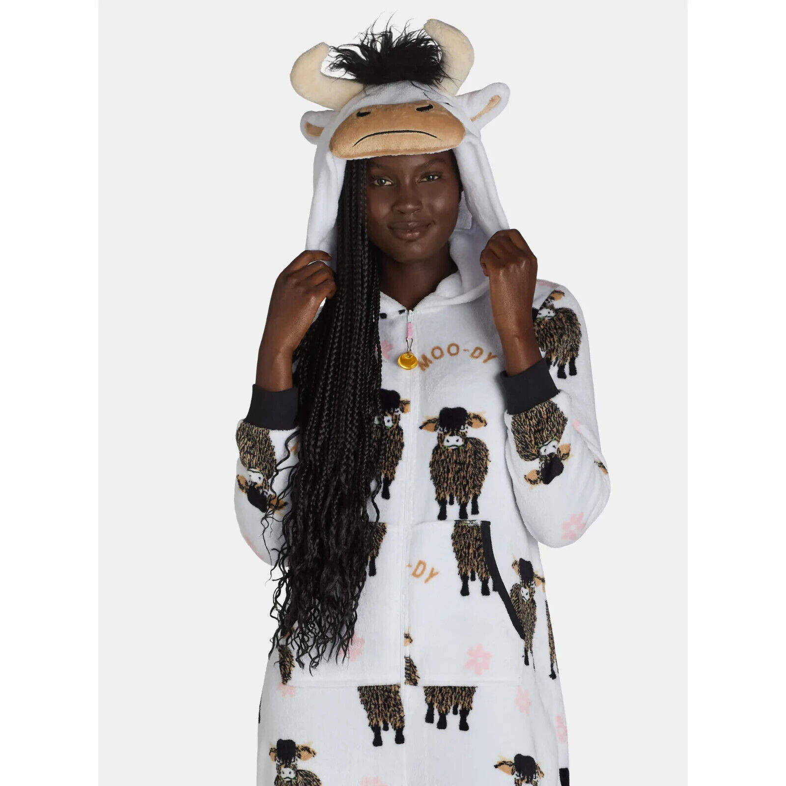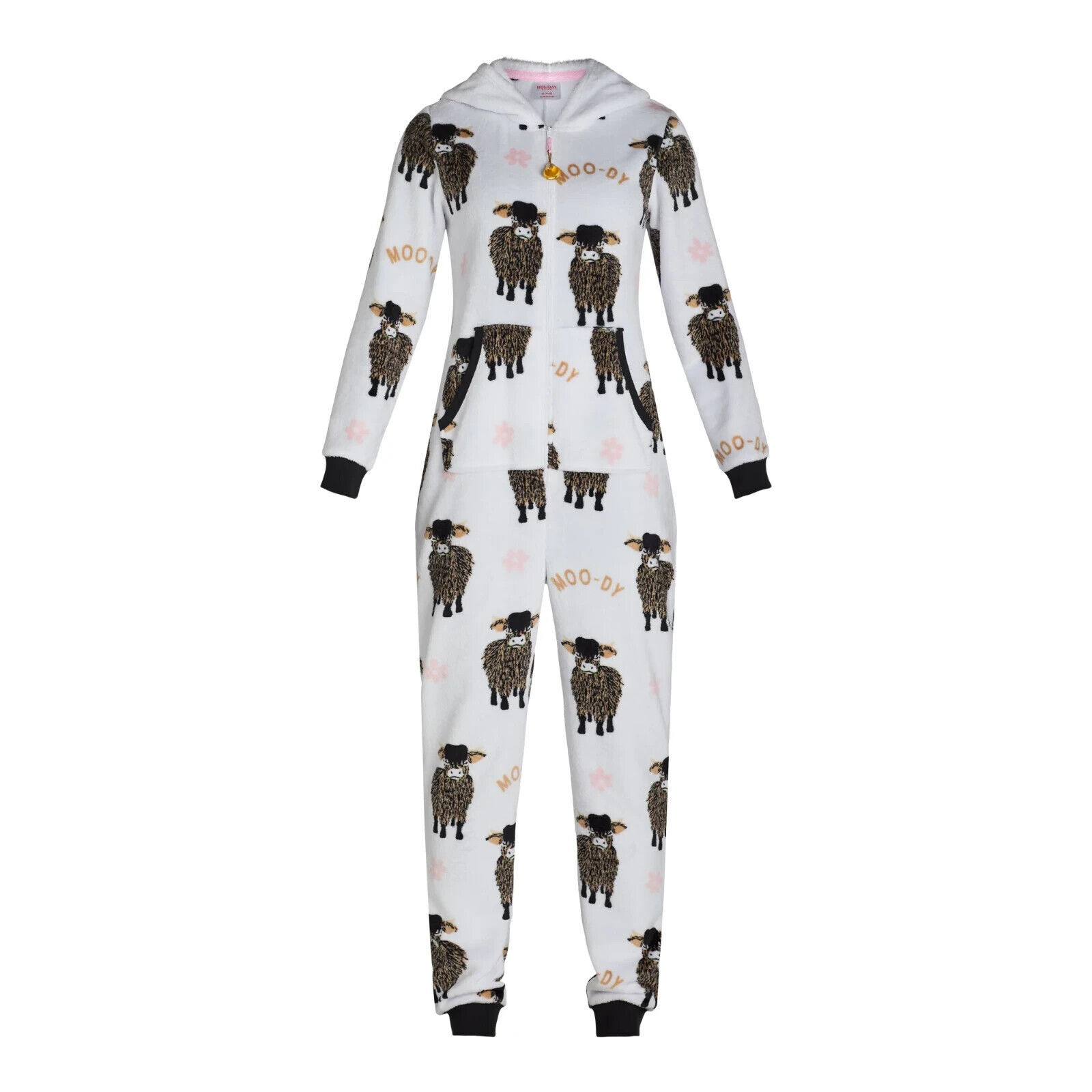 Snuggle in for some zzz?s with this Union Suit from Holiday Time. Incredibly soft and plush, this comfy one-piece union suit keeps your sleep style on the cute side. Flip up the hood and show off the adorable cow face. A must have for chilly nights, this is the perfect pick for a relaxing night at home. Two front pockets add to the overall ease of this one-piece wonder.