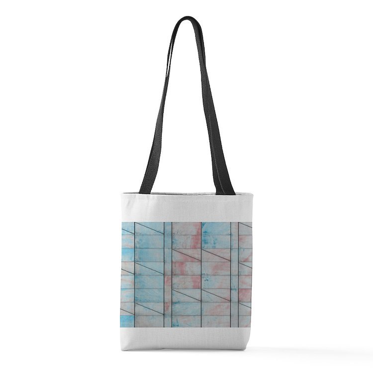 Light Red and Blue Geometric Pattern Small Tote Bag