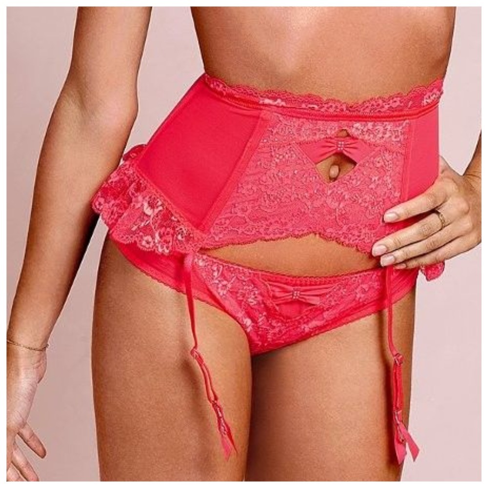 NWT Victoria's Scret Darling Temtation Collection Neon Pink Embellished Floral Lace Garter in size S/P + perfectly matching Thong/String in size XS.