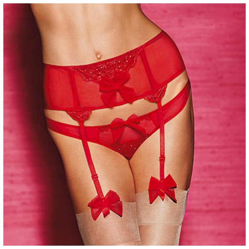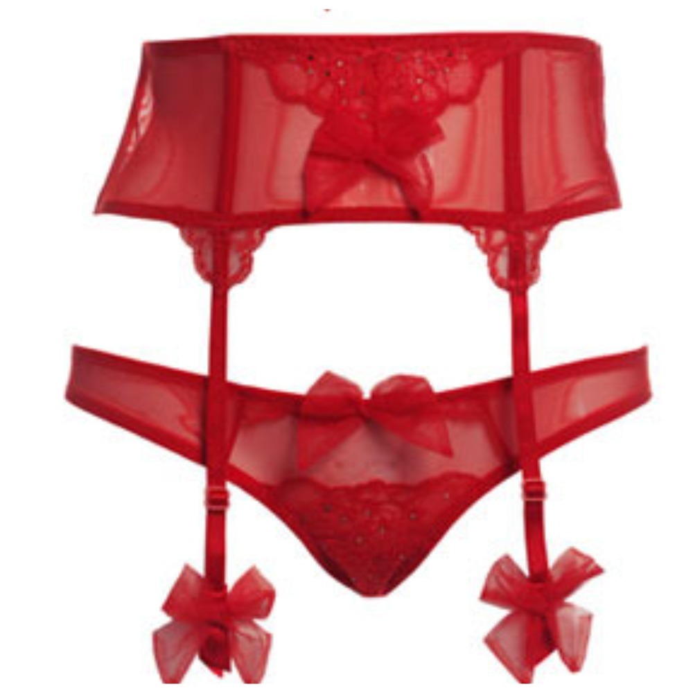 NWT M/L Victoria's Secret Embellished Red Garter Belt + matching panty M
